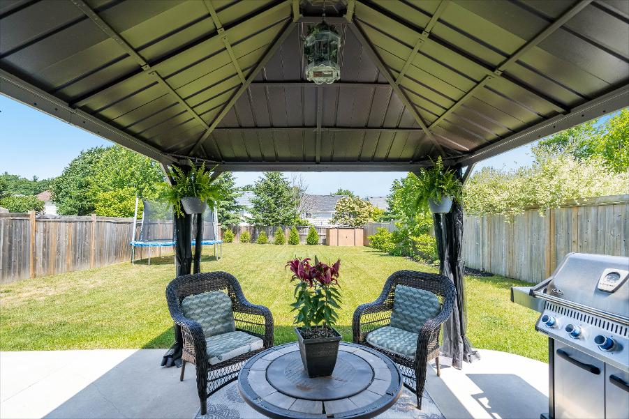 Step outsideto yourown privateretreat with a fullyfenced yard,a cement patio with a naturalgasbarbeque hookup,a relaxing hot tub,and a covered gazebo that invites year-round enjoyment