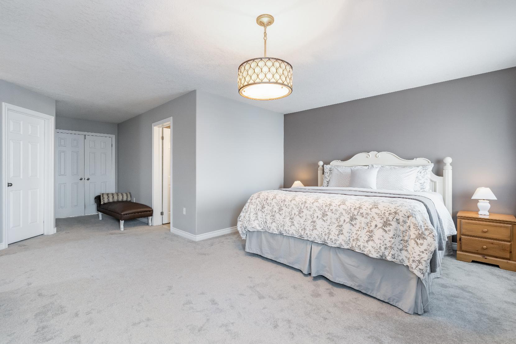 Retreat to the luxuriousprimarysuitecomplete with a spa-like 5-piece ensuitefinished with a jetted tub,glass-enclosed shower,and dualsinksforadded convenience