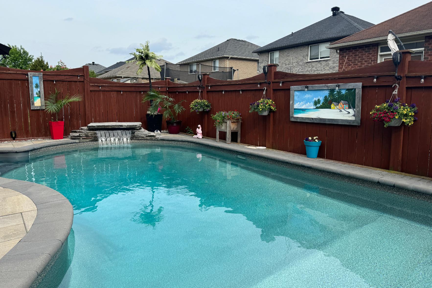 - Fullyfenced backyard completewith a sparkling inground saltwaterpool idealforhosting friendsand familyin the warmermonths