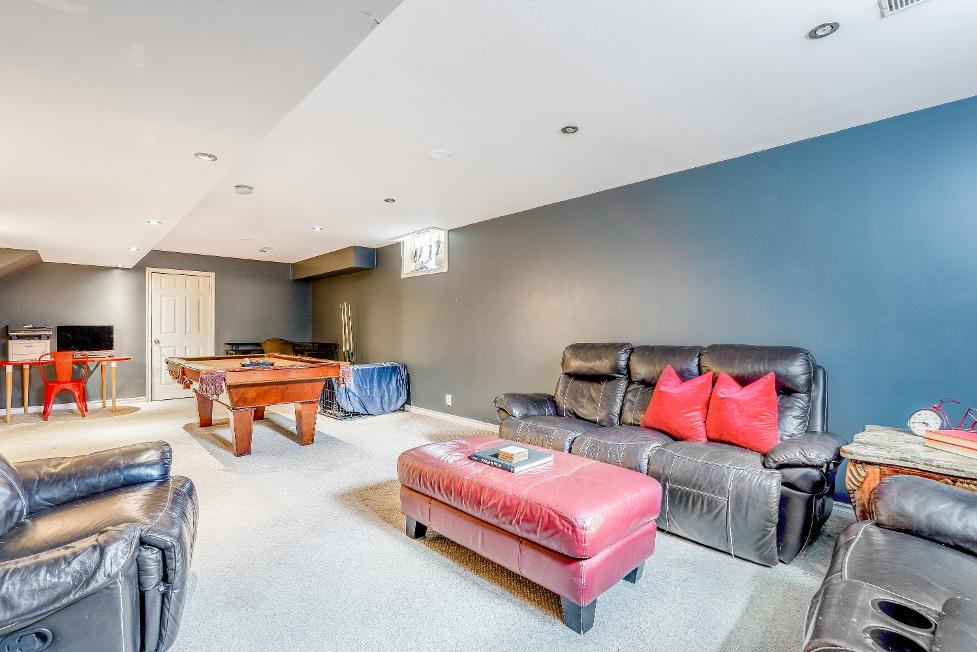 Enjoya fullyfinished basement featuring two additionalbedrooms,a sprawling family room,and an extra bathroom,idealforlarge ormulti-generationalfamilies