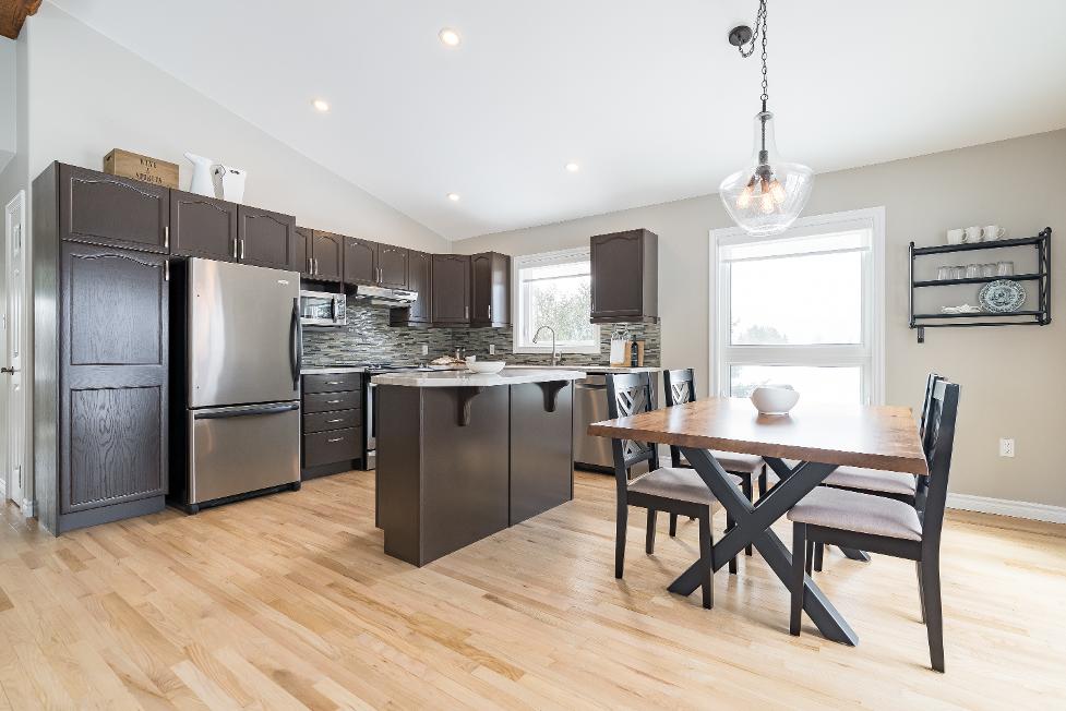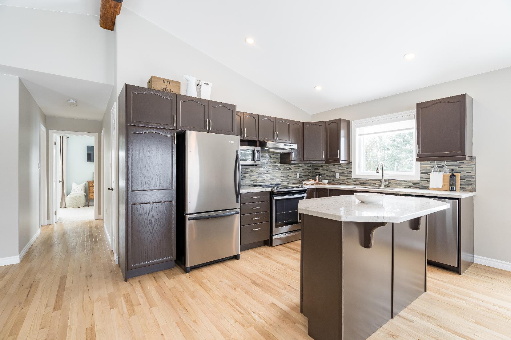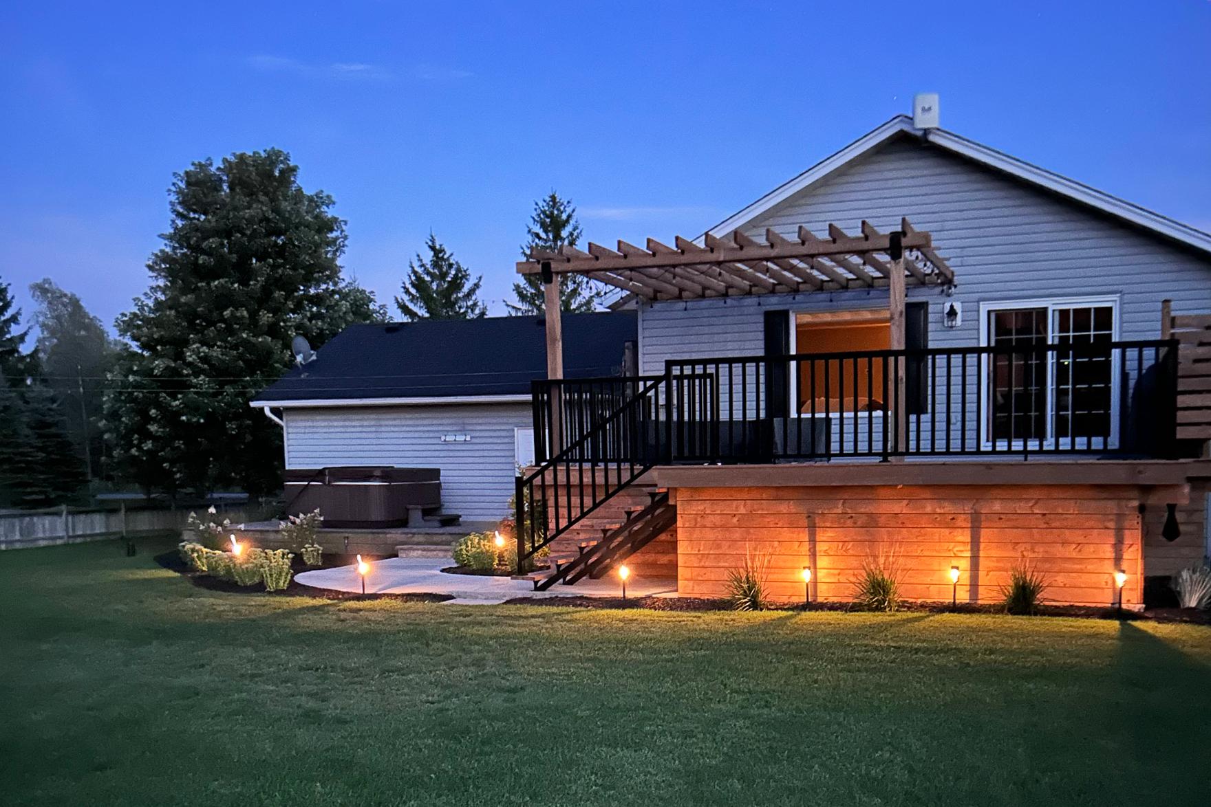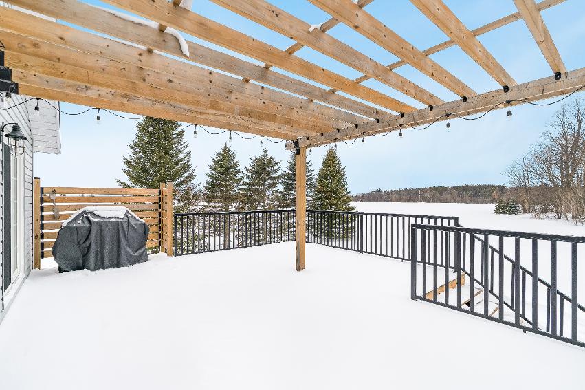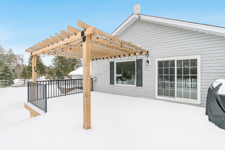 - Walkout from the kitchen to a new spaciousbackdeckfeaturing a charming pergola and ample room