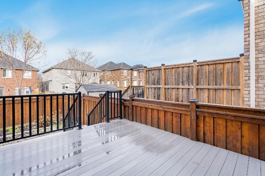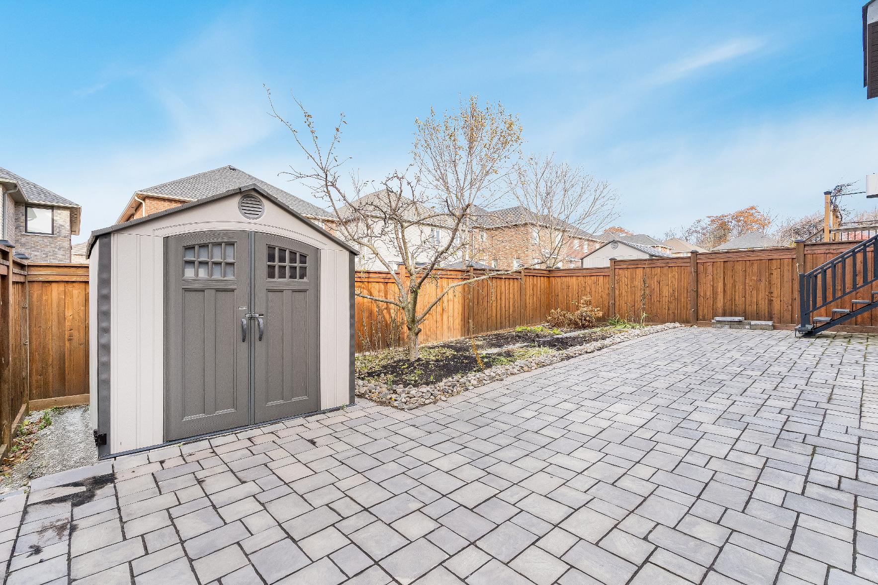 - Discoverthe fullyfenced backyard complete with a well-sized compositedeck,a garden shed, and finished with an interlockpatio