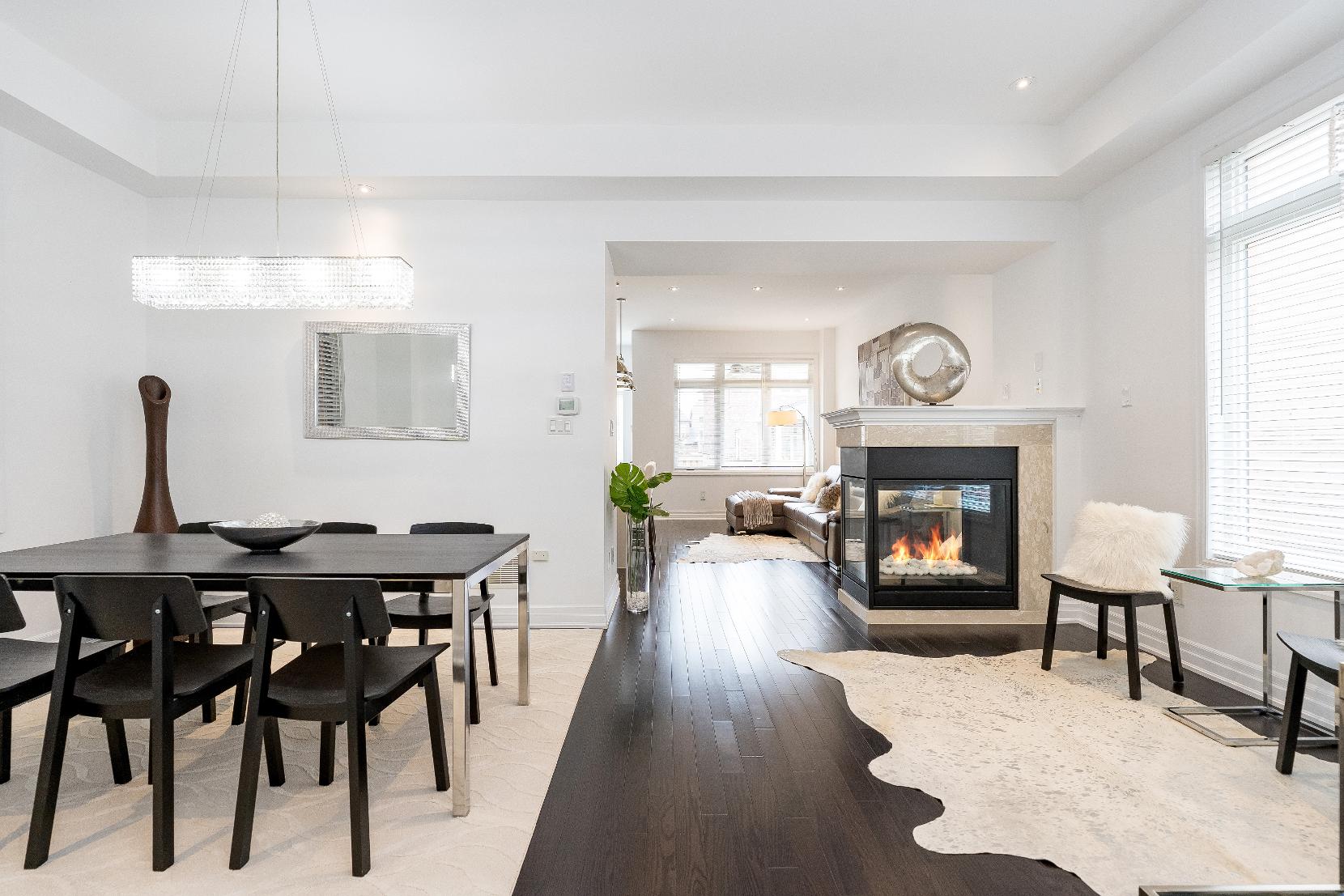 Exclusive collection of severalupgraded finishesincluding hardwood floorsspanning throughout,a three-sided fireplace,convenienceof garage accessto the homeand backyard, main levellaundry,a balconyoff the primarybedroom,an open-concept layout,oversized closets,on-demand hot water,a fullyfenced yard,and no sidewalksforadded privacy