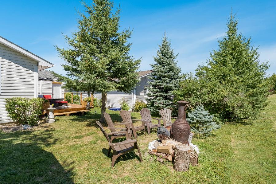 - Step outsideto thebackyard where you'llfind a sizeable newdeckand