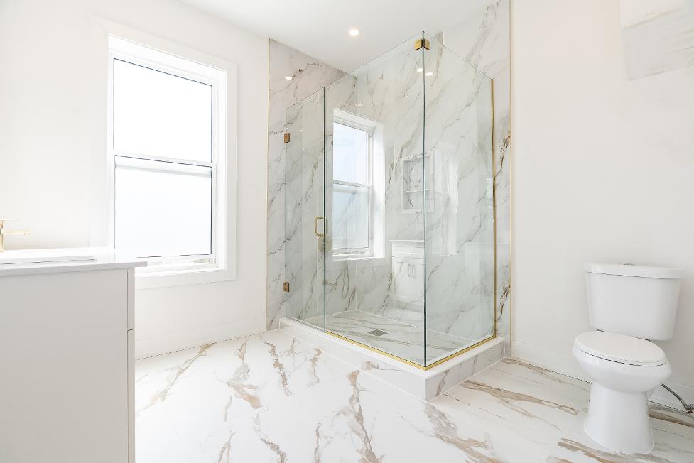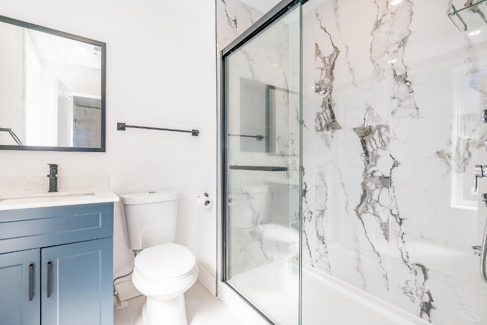 The brand-newkitchen showcasesstylish cabinetry,whilethe bathroomsimpress with walk-in showerswrapped in stunning oversized porcelain tilesfrom floorto ceiling