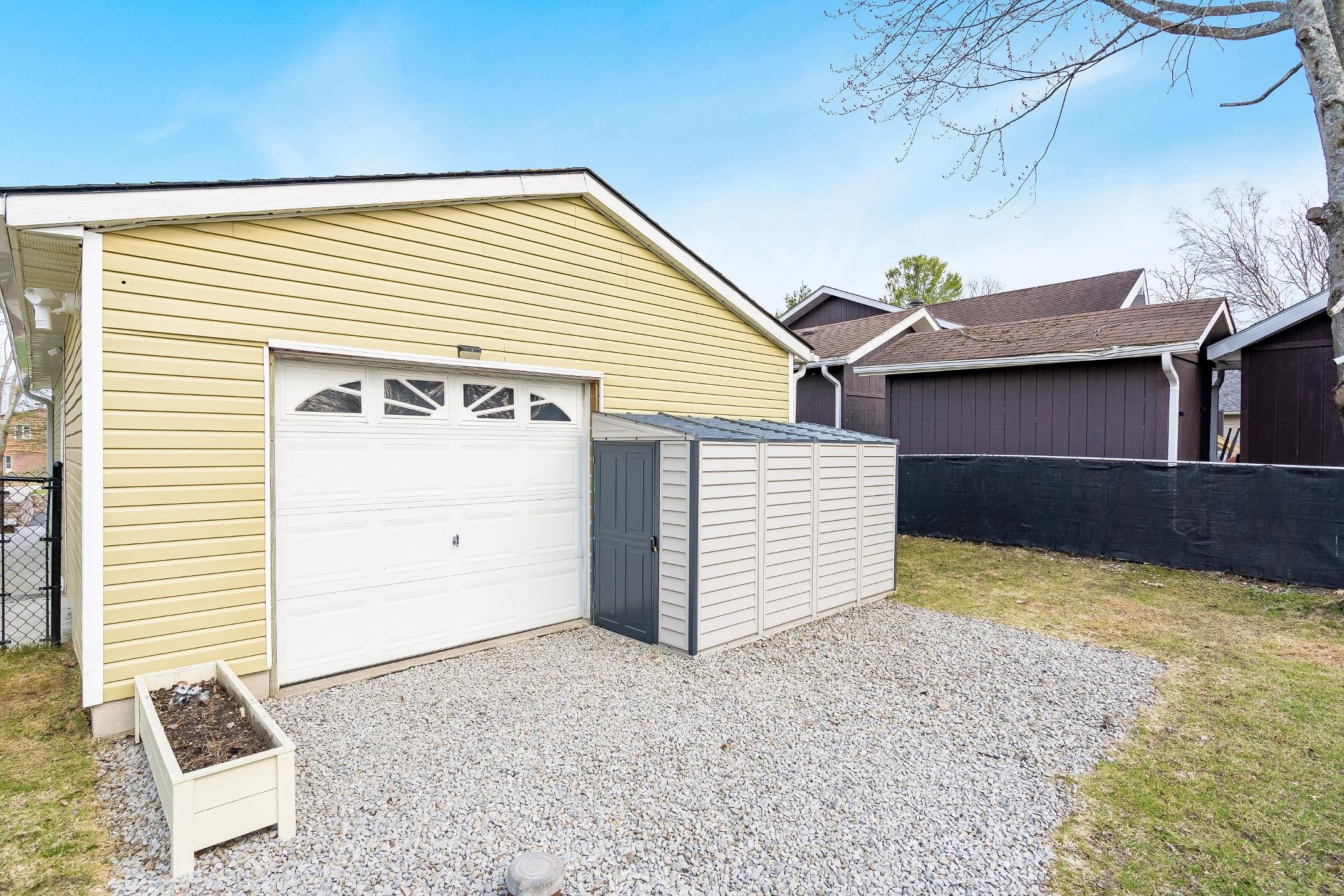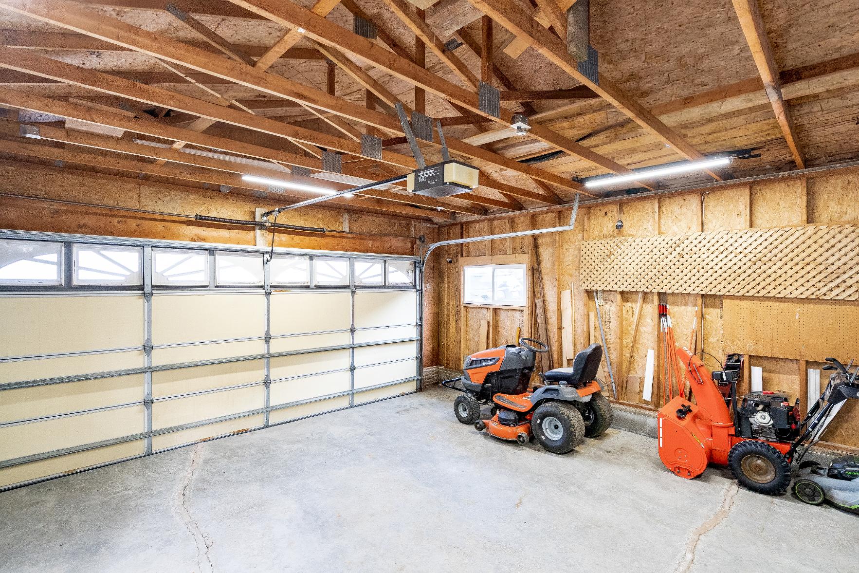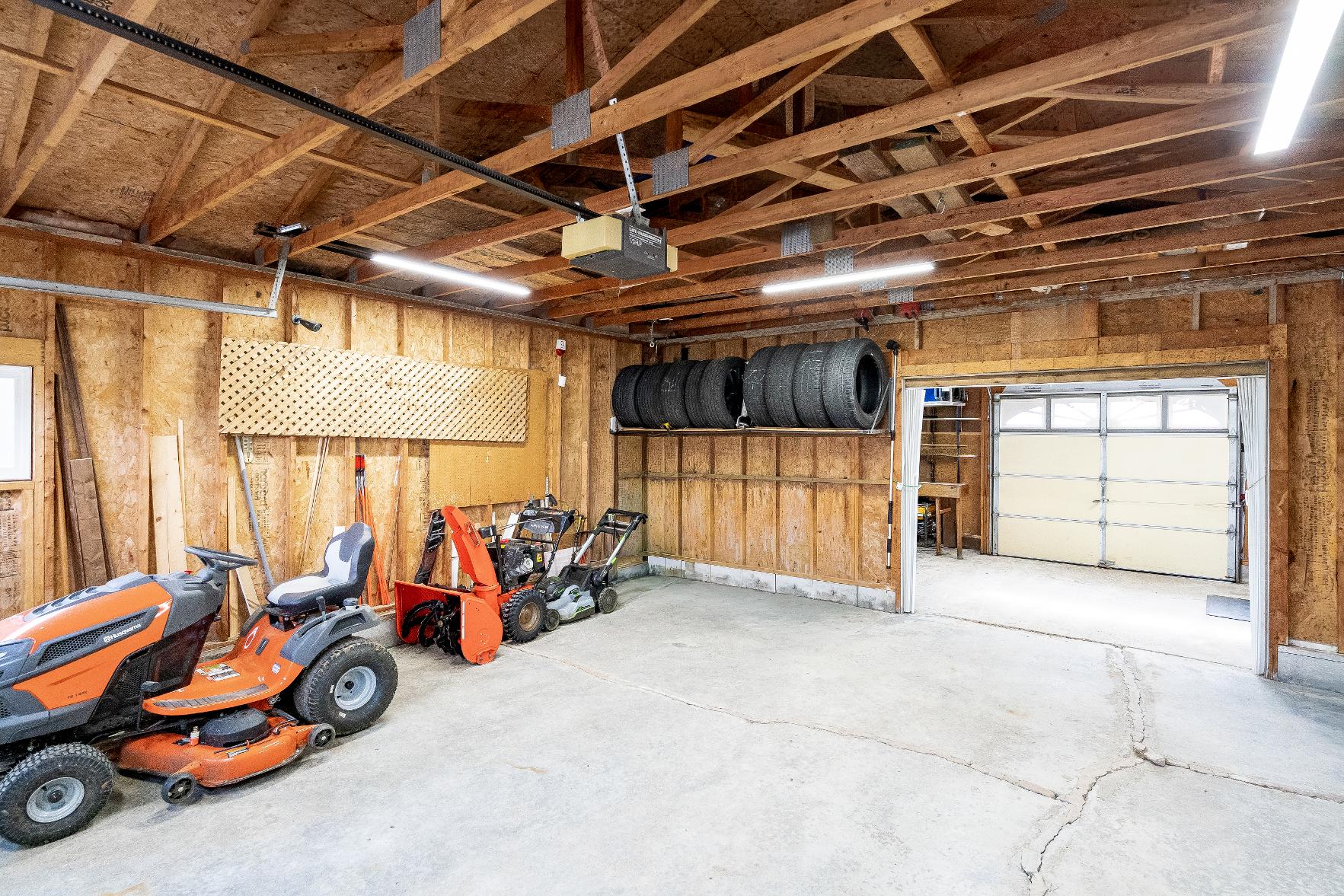 Spaciousdetached two-cargarage featuring a dedicated workshop with its own garage door,complemented byan expansivedrivewaythat providesample parking and exceptionalversatilityforvehicles,storage,orhobbyspace
