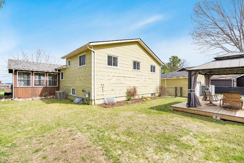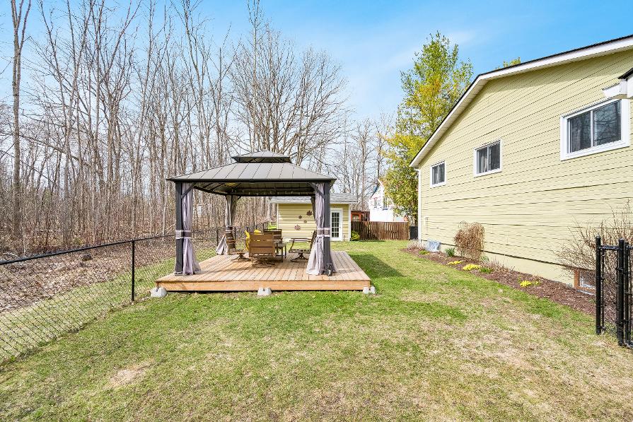 - Generouslysized fullyfenced backyard featuring a gazebo and securelawn space forkidsand pets to play