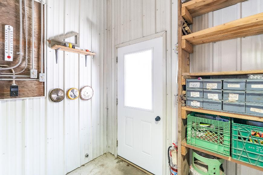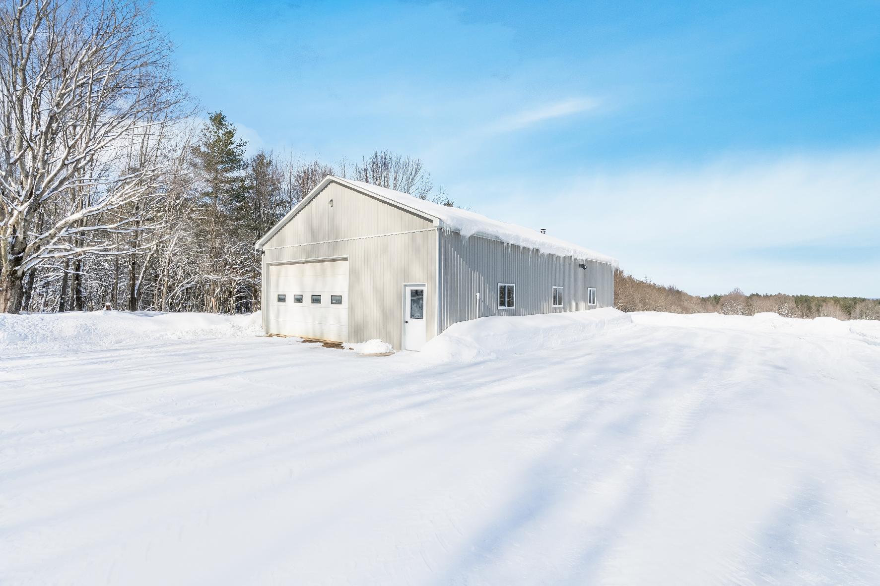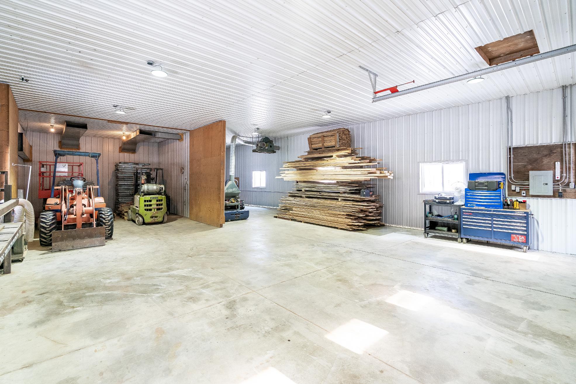 12'ceiling and 100-amp service,a 63'x27'outbuilding with 60-amp serviceforhydro,and a 54'x31'red storagebuilding