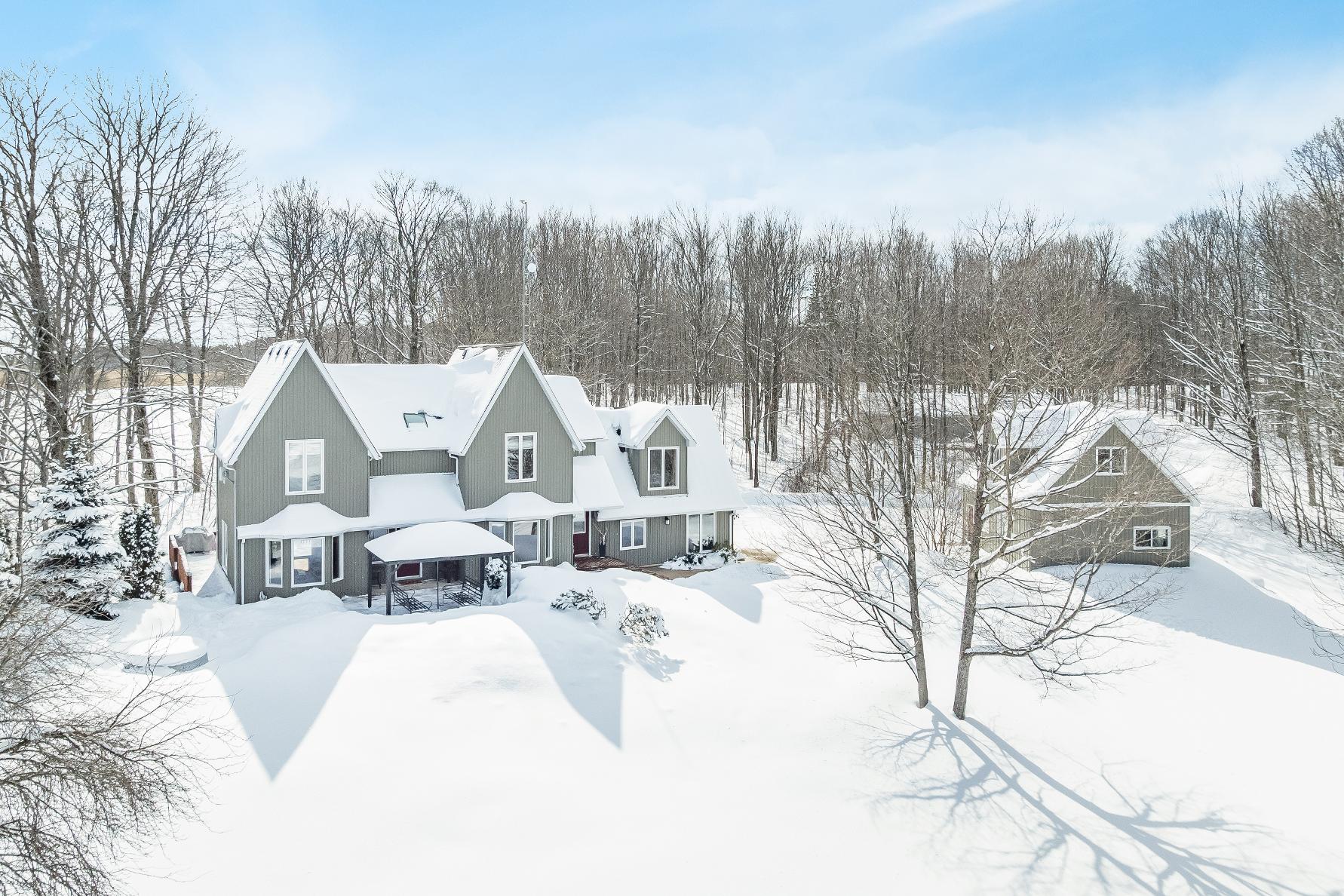 Set on over18 rolling acresjust outsideFlesherton,thispicturesque estate welcomesyouwith a winding drivewaythrough maturetrees,opening to panoramic viewsstretching acrossBeaverValleytoward Old Baldyand Kimberley,offering peacefulprivacyand truecountryliving at itsfinest