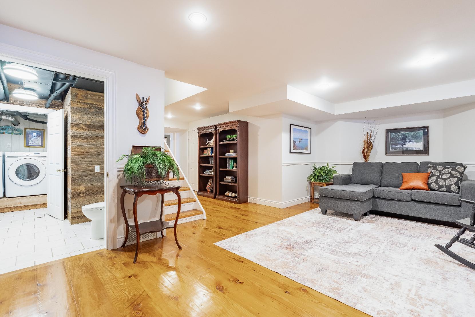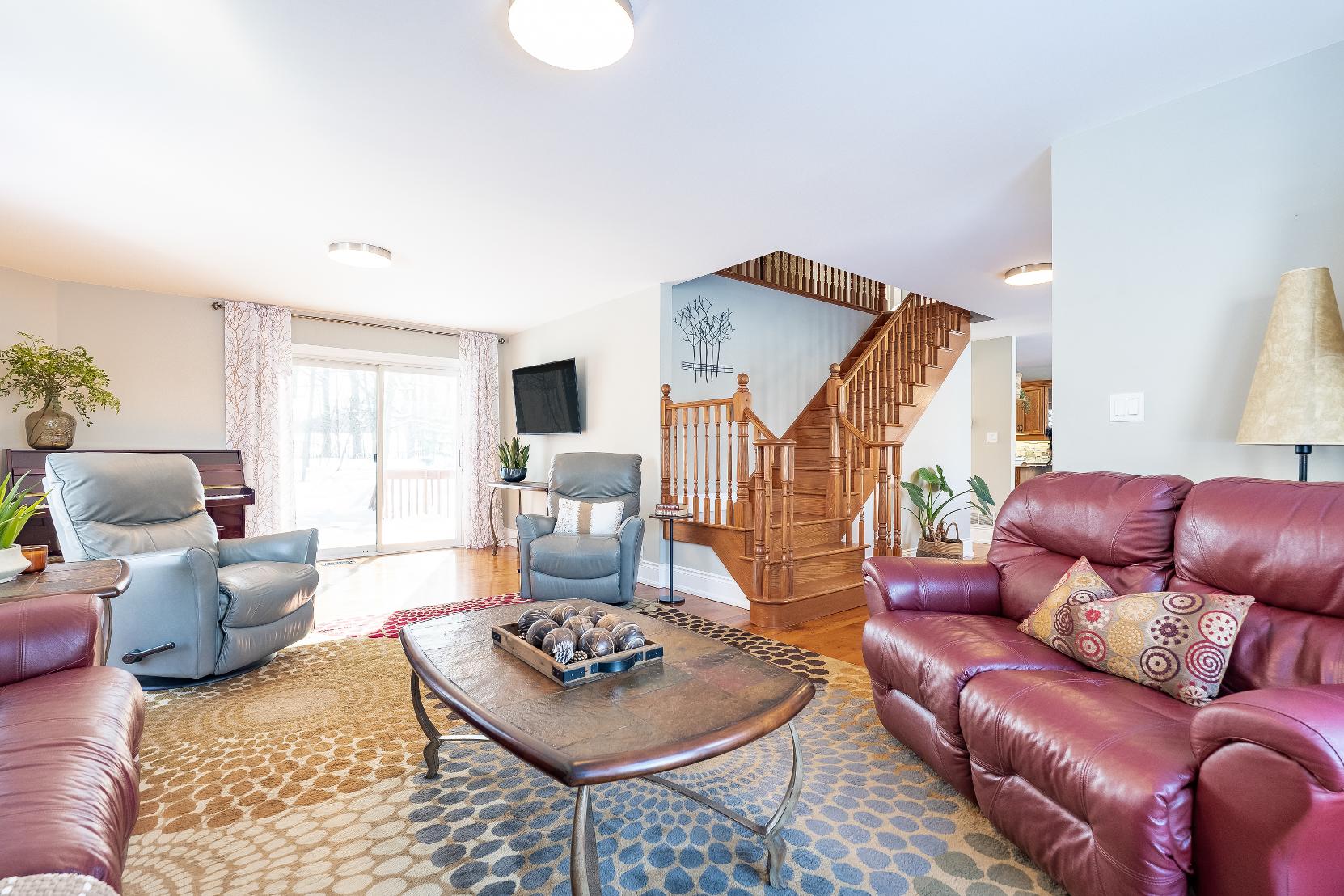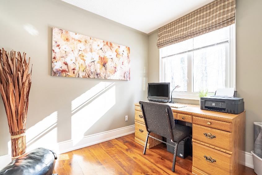 Character,warmth,and timelessfinishesdefine thishome,wherebeautifulantiquehardwood floorscrafted from reclaimed barn wood flow throughout,while the main leveloffersa spaciouskitchen with granite countertops,a pantry,and abundant wood cabinetry,a bright dining area with largewindows,an expansiveliving room with a walkout to the backdeck,a privateoffice orden,and a convenient powderroom