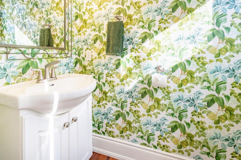 - Accented with statement wallpaper