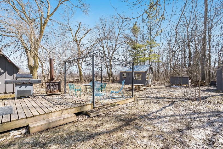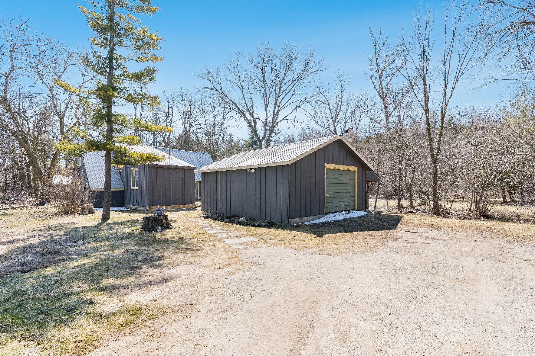 Adetached garageprovidesa fullworkshop at the front and a powered bunkieat the back,idealforhosting guestsorpursuing hobbies,whilea nearbywood shed keepsfirewood closeat hand forcozyevenings