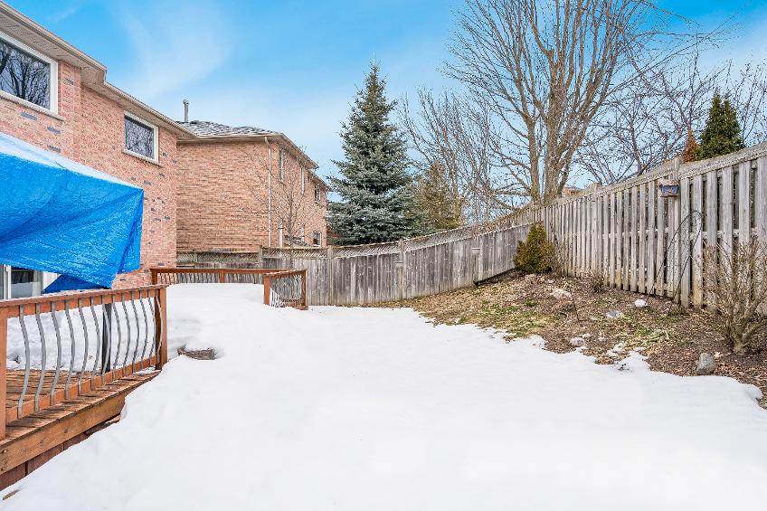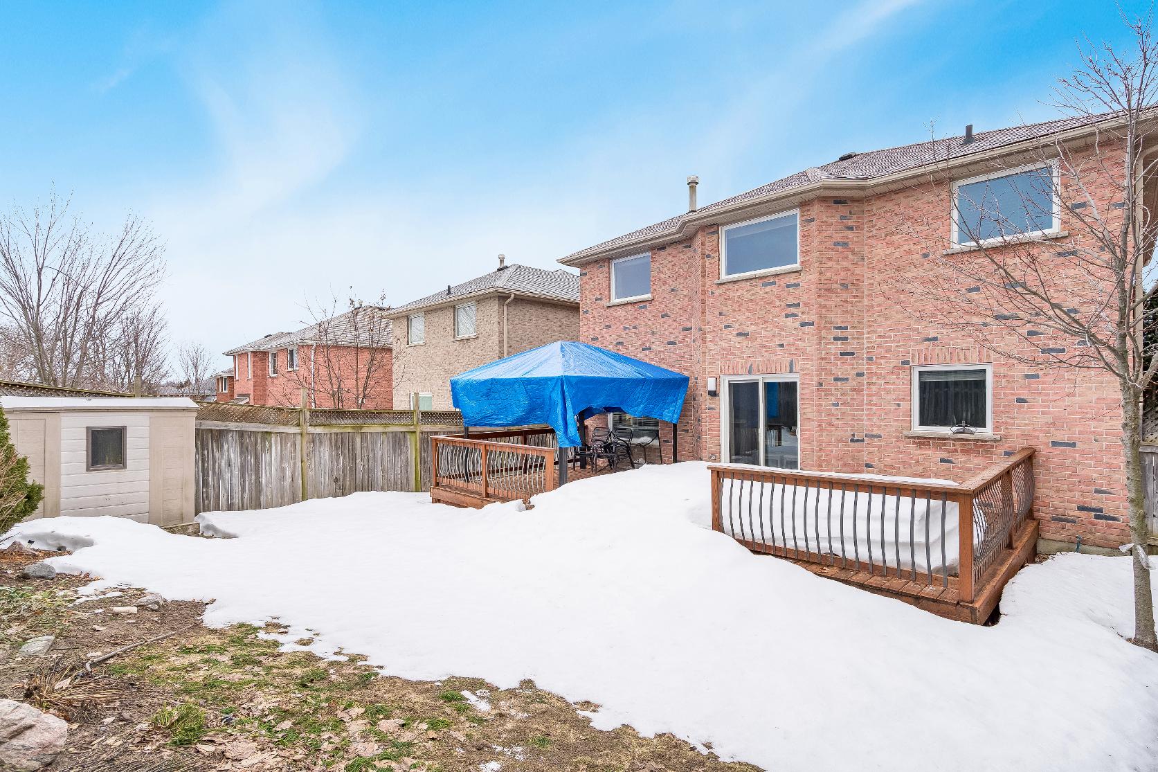 - Fullyfenced backyard featuring a custom deckand gazebo perfect forenjoying summerdayswith loved ones