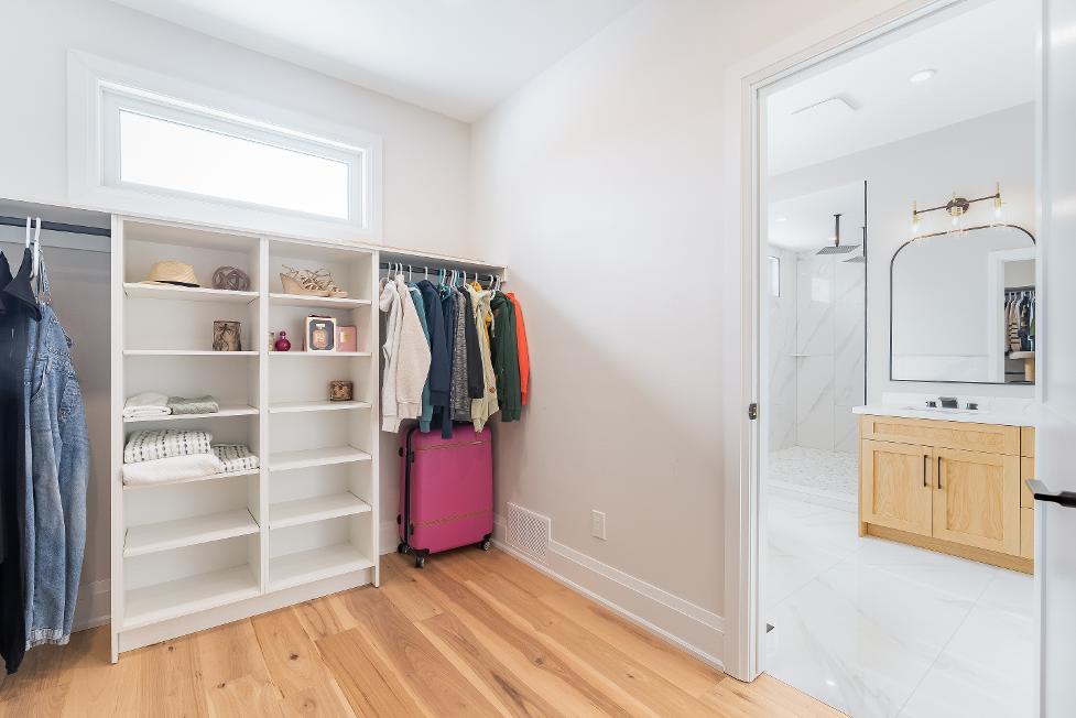 - Oversized walk-in closet equipped with built-in organizersand a window