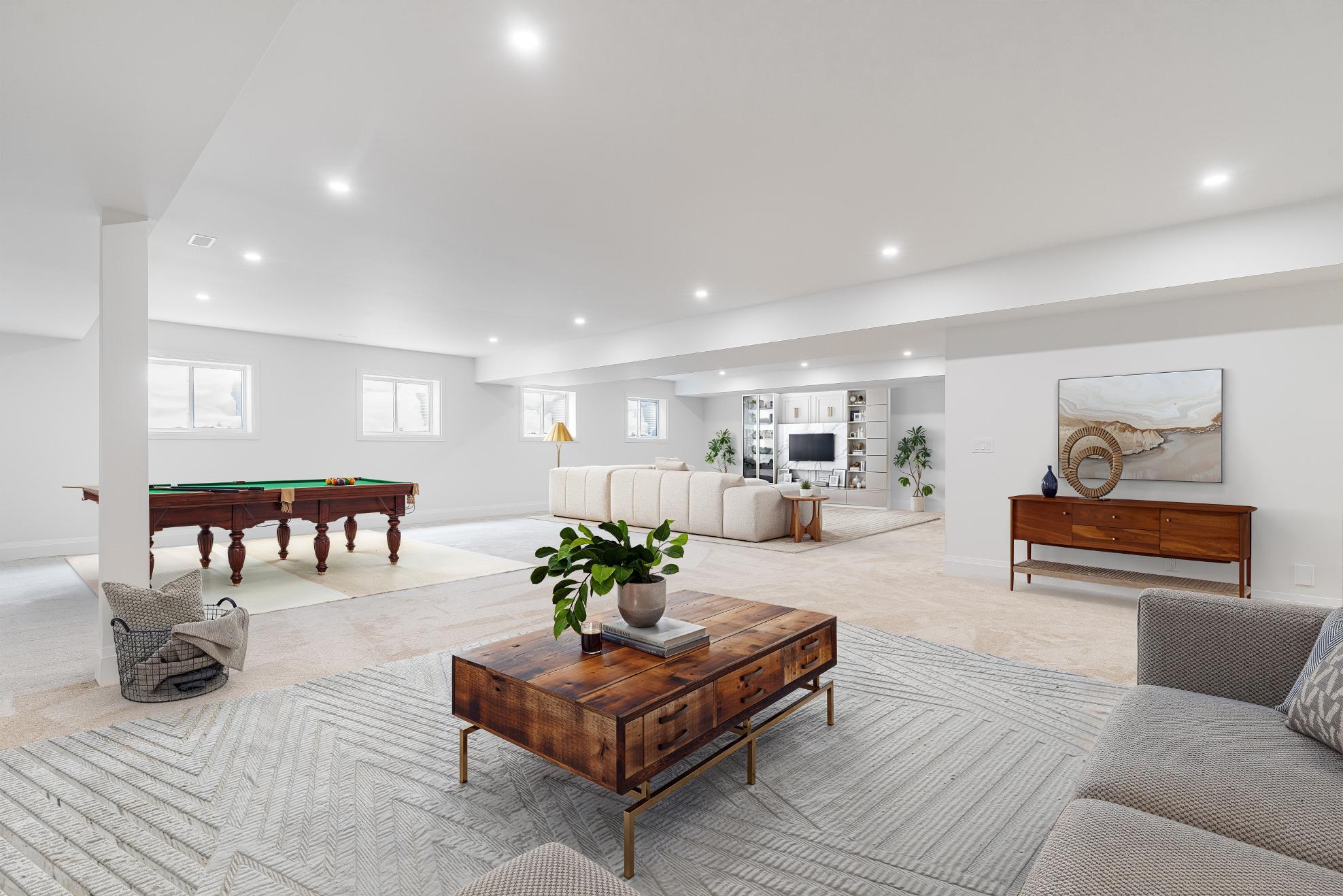 The fullyfinished basement trulyelevatesthe home with three bedrooms,an exercise room,and a sprawling recreation room perfect formovie nightsand gamedays,allenhanced byin-floorheating,an ICFfoundation forenergyefficiency, and convenient direct accessto the heated garage