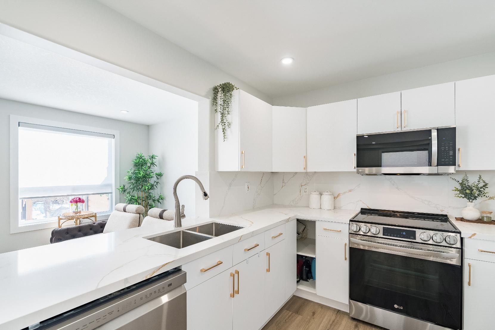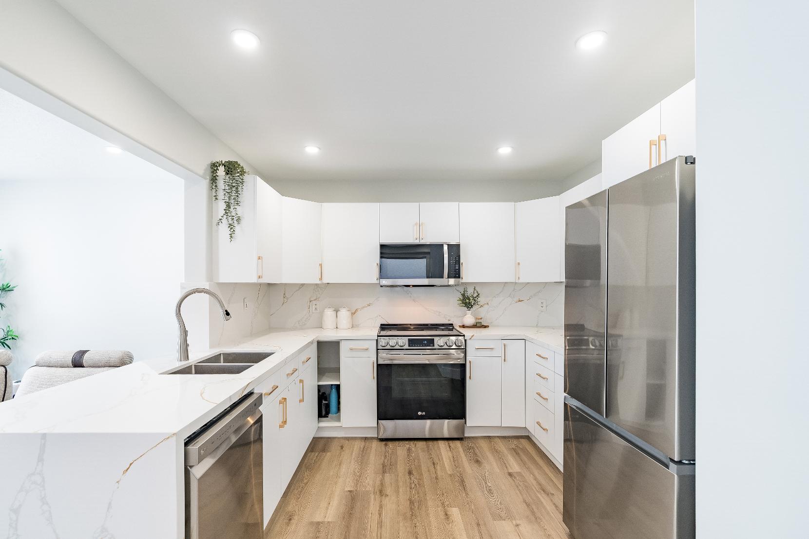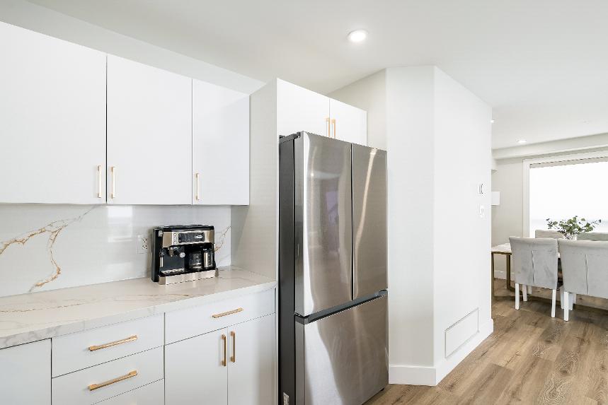 Renovated with qualityfinishes,the standout sun-filled kitchen boastsmodern finishes, quartzcountertops,and deckaccess,complemented bya welcoming covered front porch foradded curb appealand outdoorenjoyment