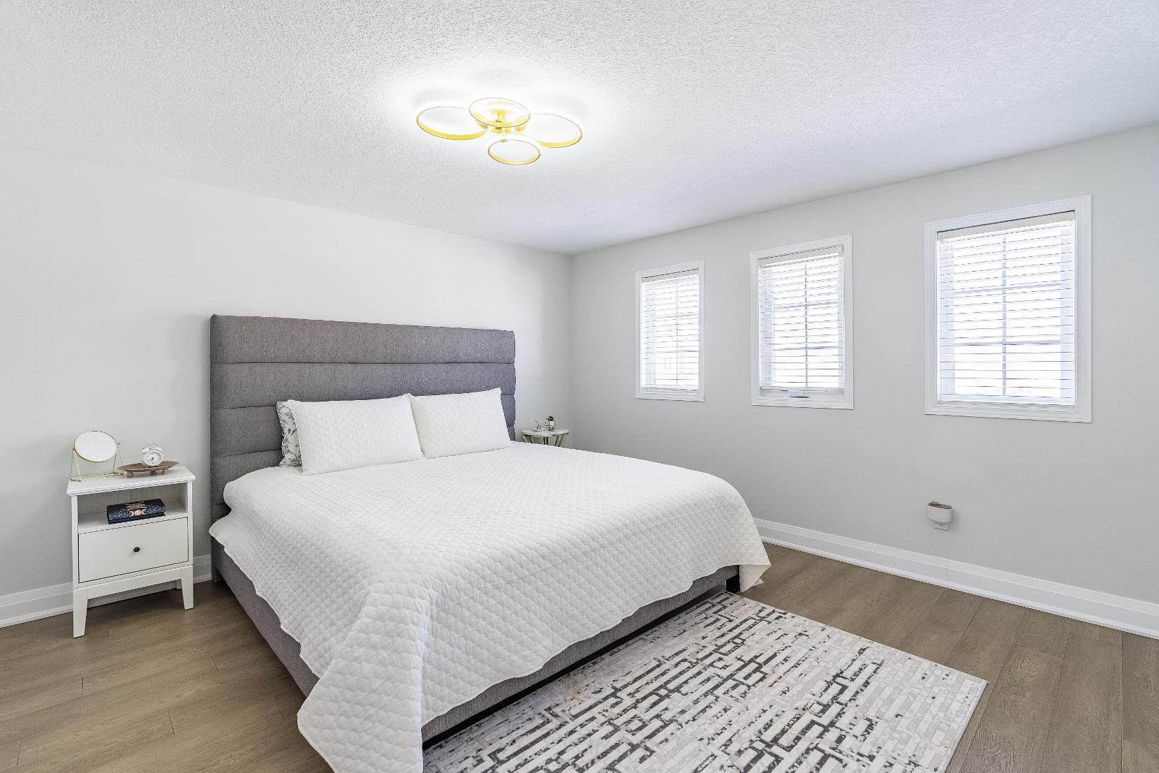 Bright and spaciousprimarybedroom,coupled with a newerensuitebathroom and a walk-in closet foradded comfort and convenience