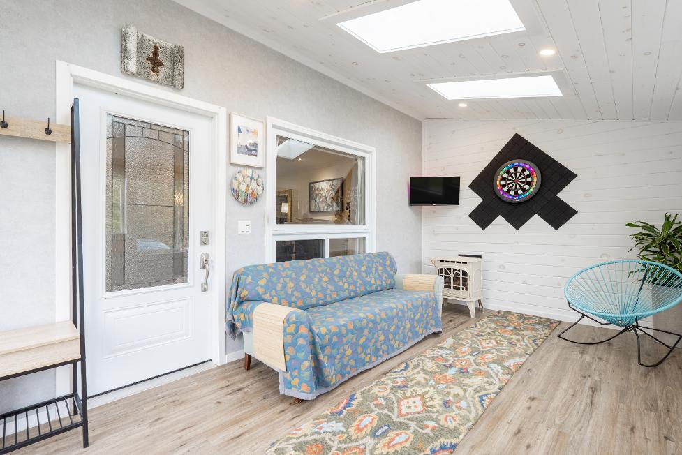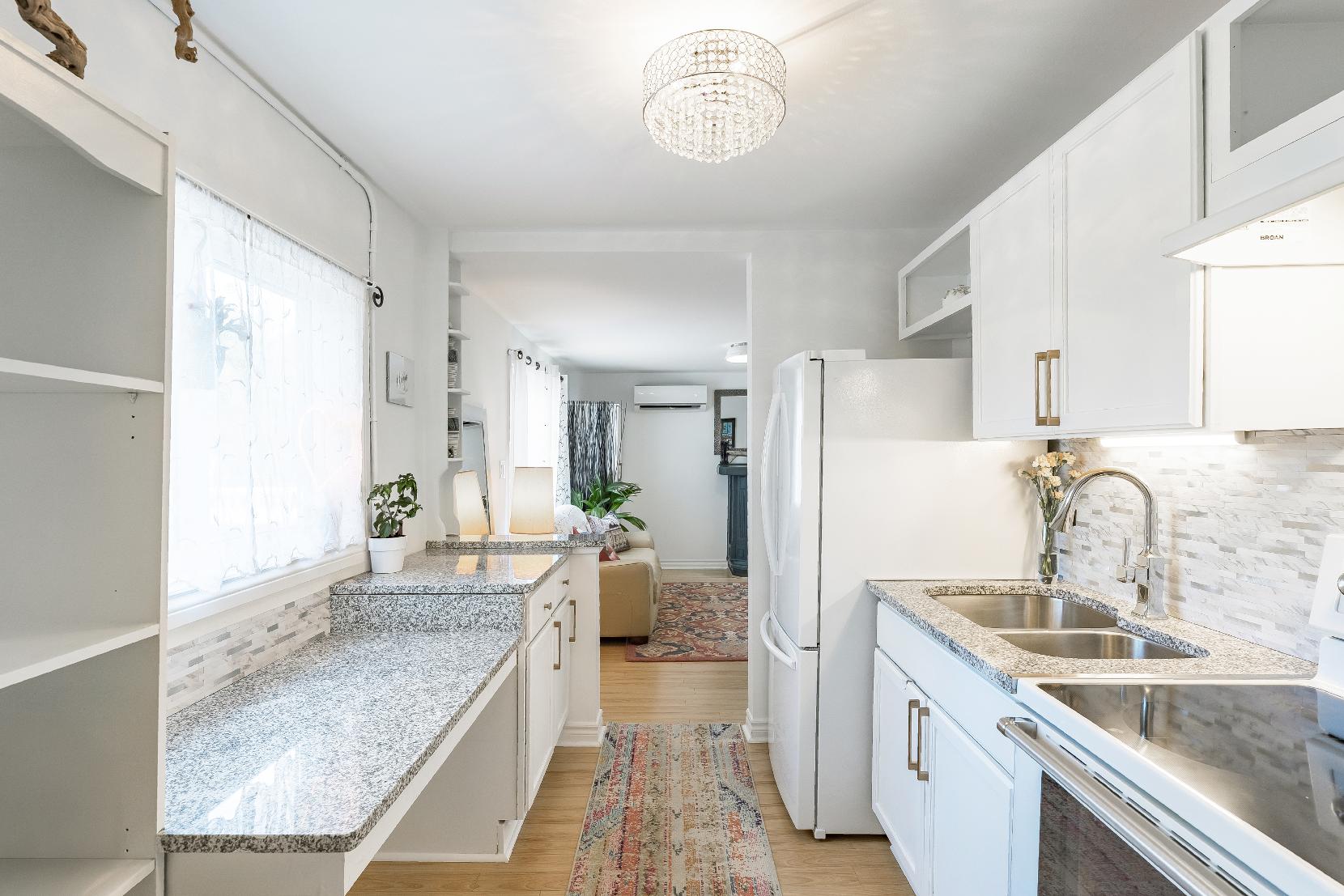 The beautifullyrenovated bungalowsuiteprovidesa private bedroom oroffice,a self-contained kitchen with a stove, and a 3-piecebathroom,making it the perfect space forguests,extended family,rentalincome,oreven a dedicated home office