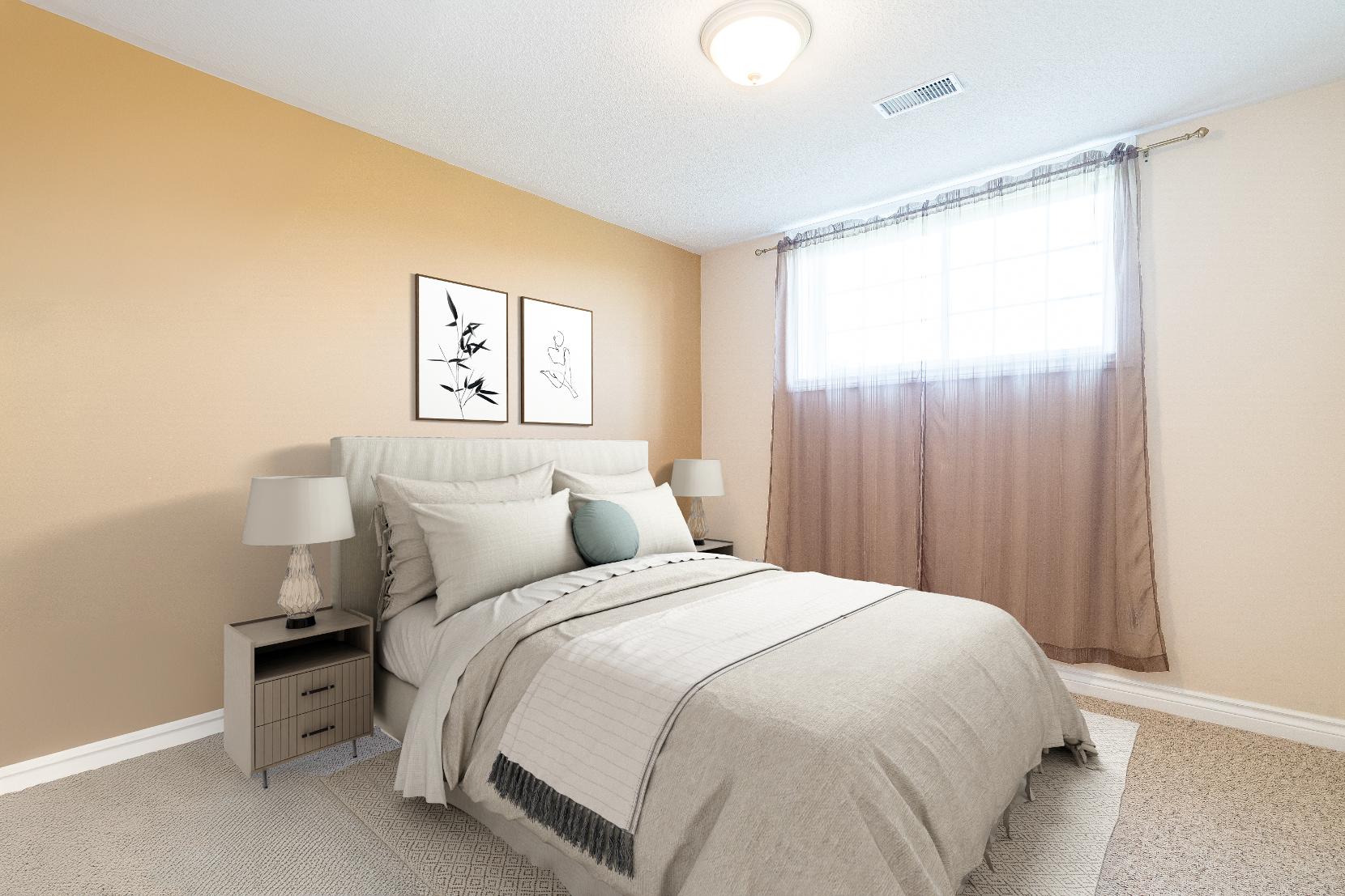 - Oversized front-facing windowbathing the room in warm sunlight