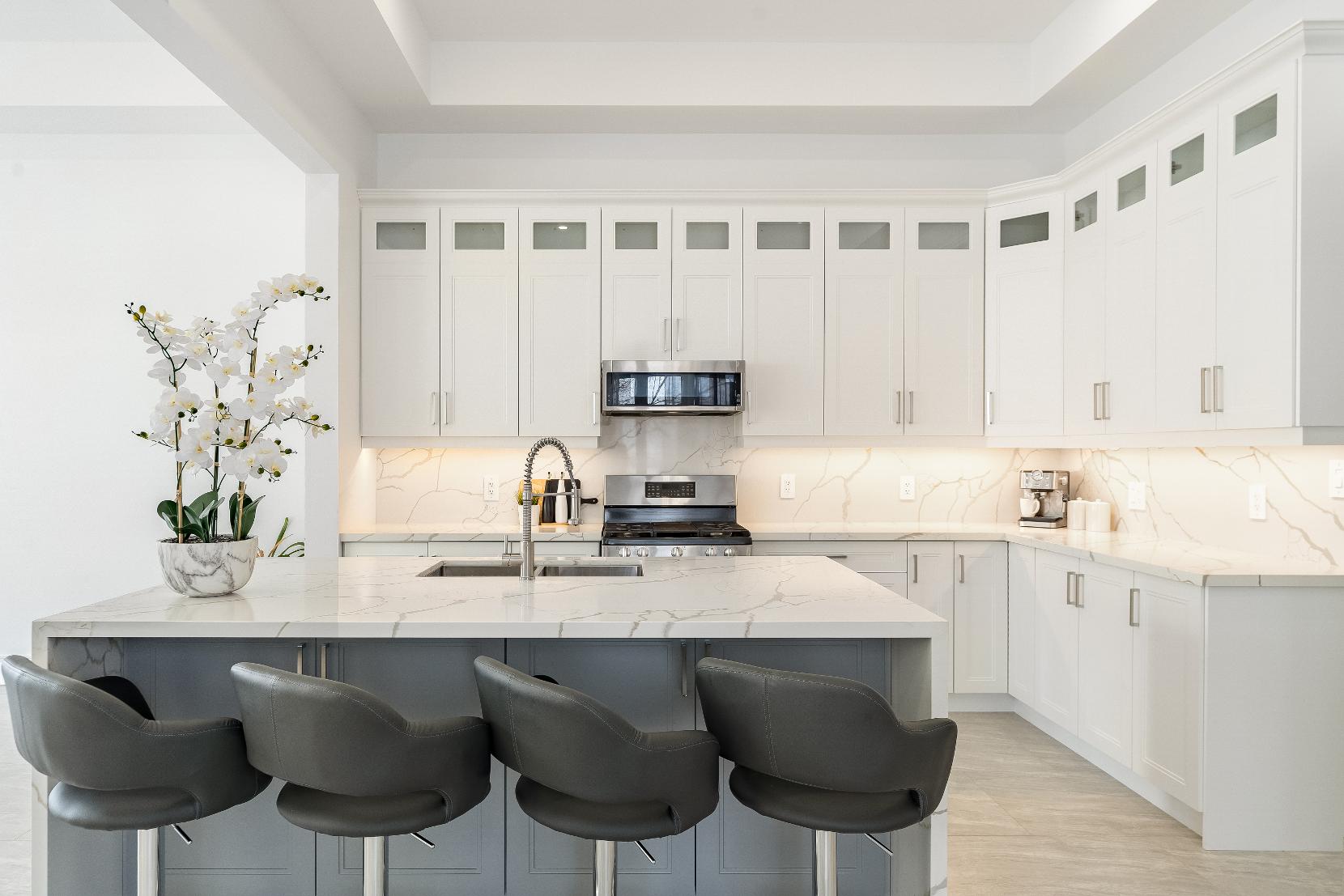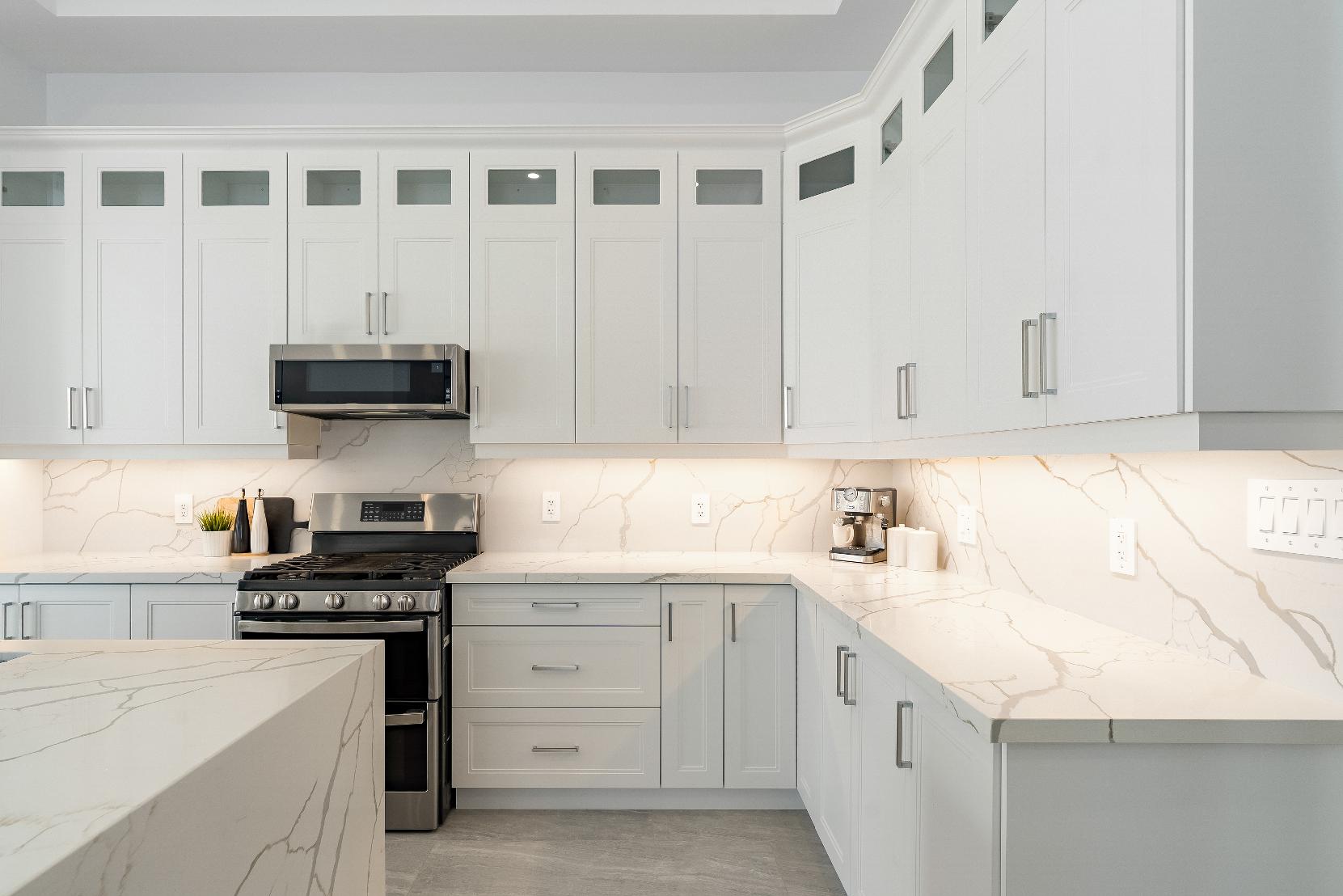 - Stunning quartzcountertopsseamlessly extending to the backsplash