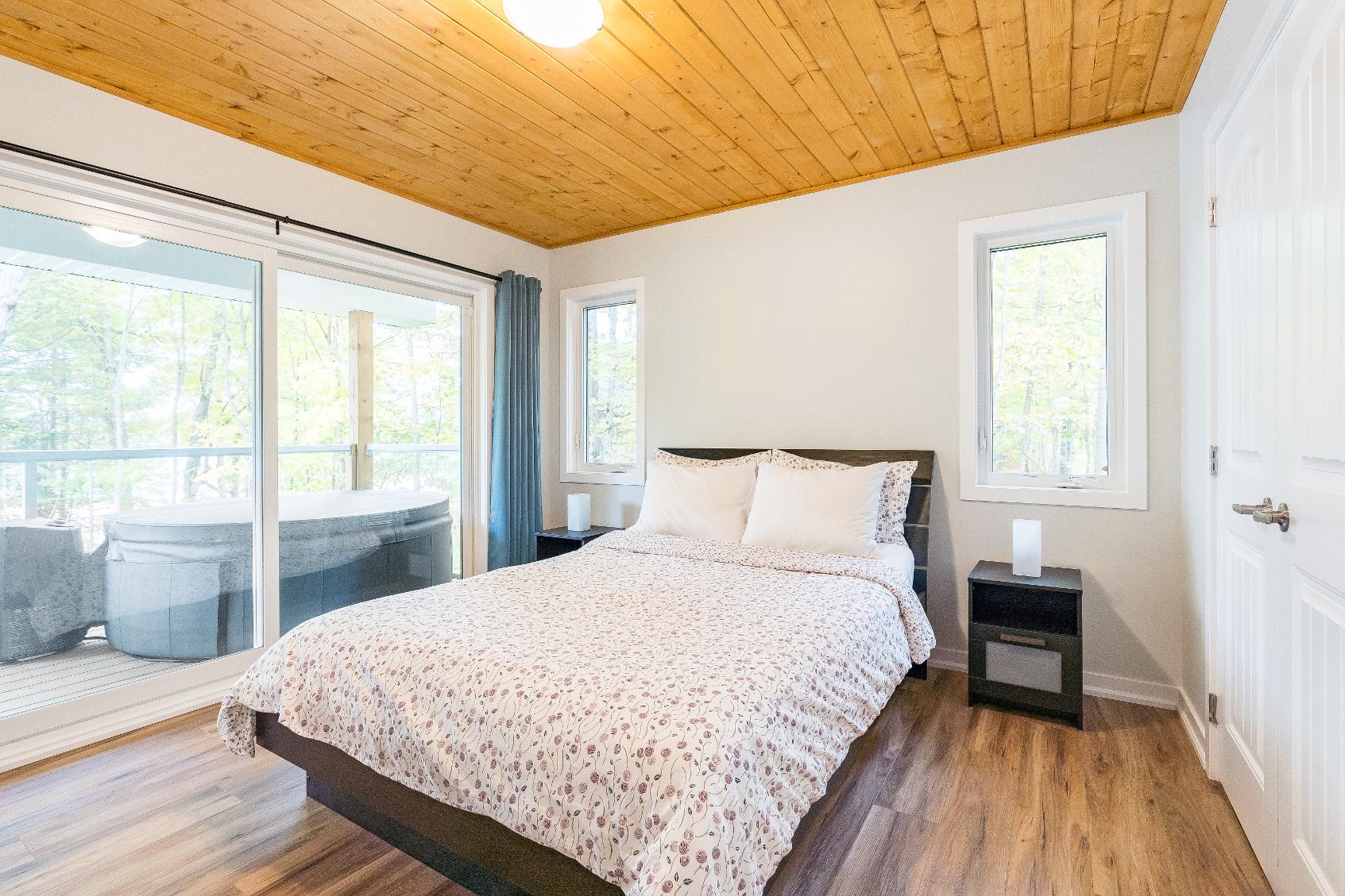 Year-round getawayincluding a separatebunkieequipped with heat, electricity,and water,a floating dock,and sprawling acresto explore, completewith snowmobiletrailsrunning through theproperty