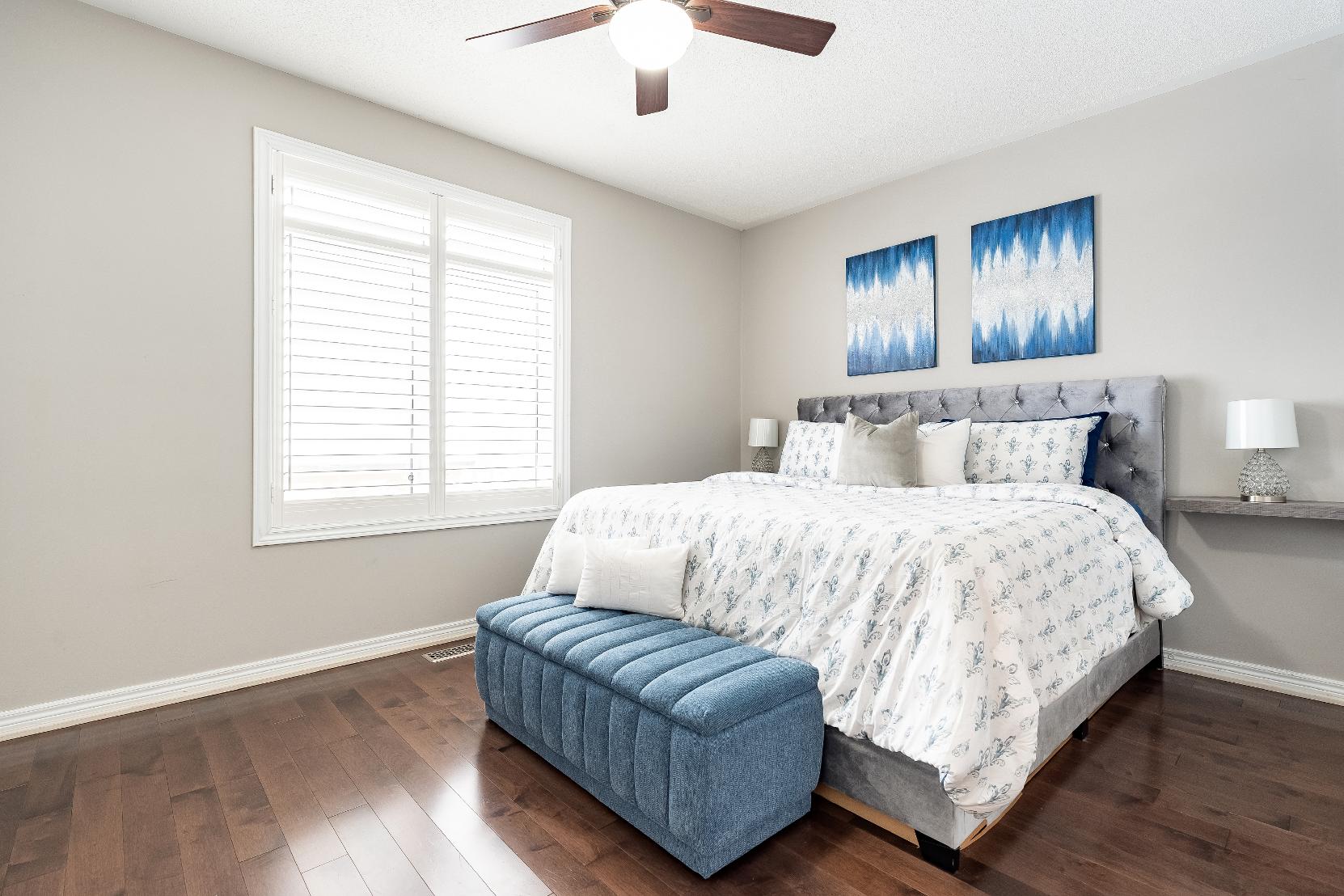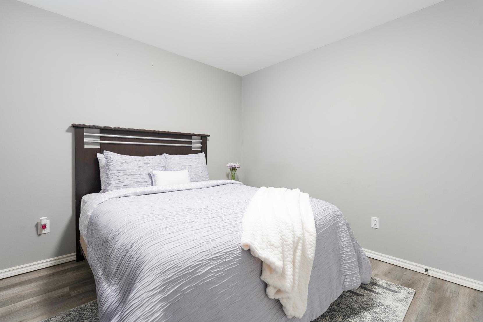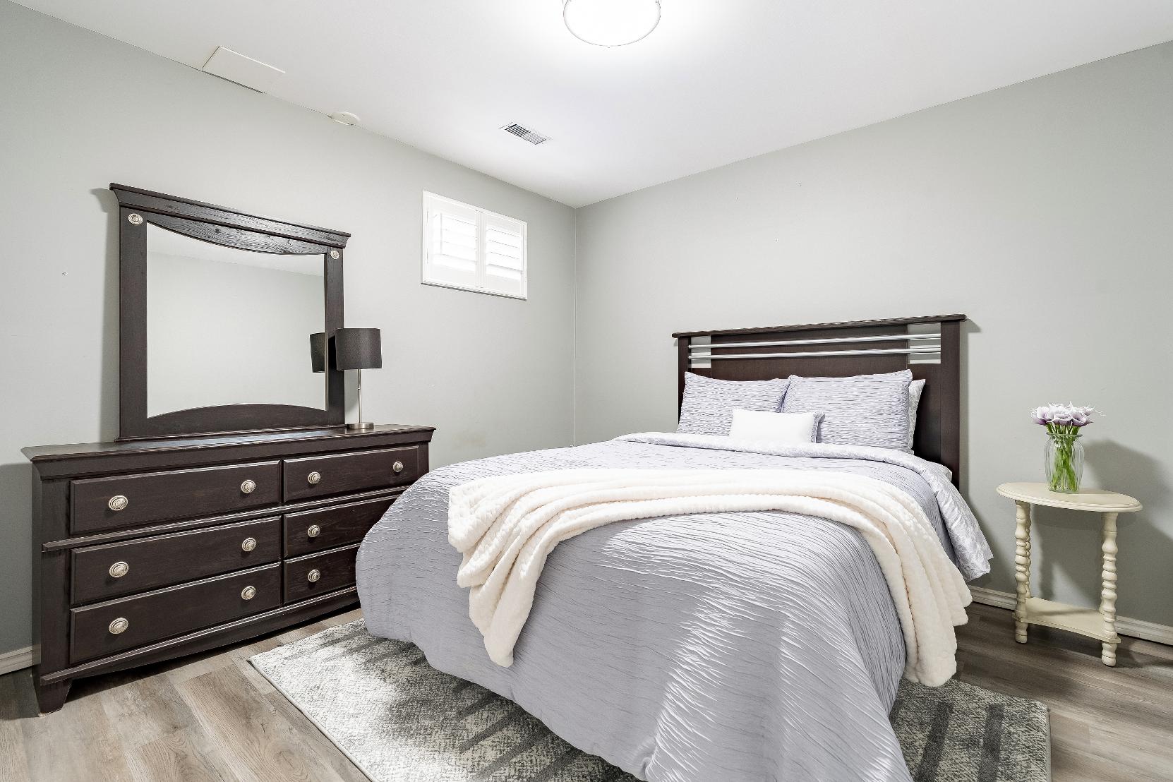 The main levelofferscomfortable sleeping accommodationshighlighted bya peacefulprimarybedroom with backyard views, generousstorage,and semi-ensuite accessto a 4-piecebathroom with quartzcountertops,whilea third bedroom provides flexibilityforchildren,guests,orevolving familyneeds