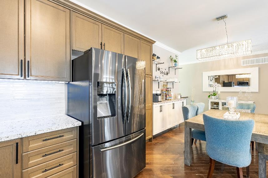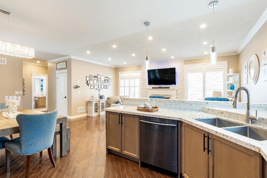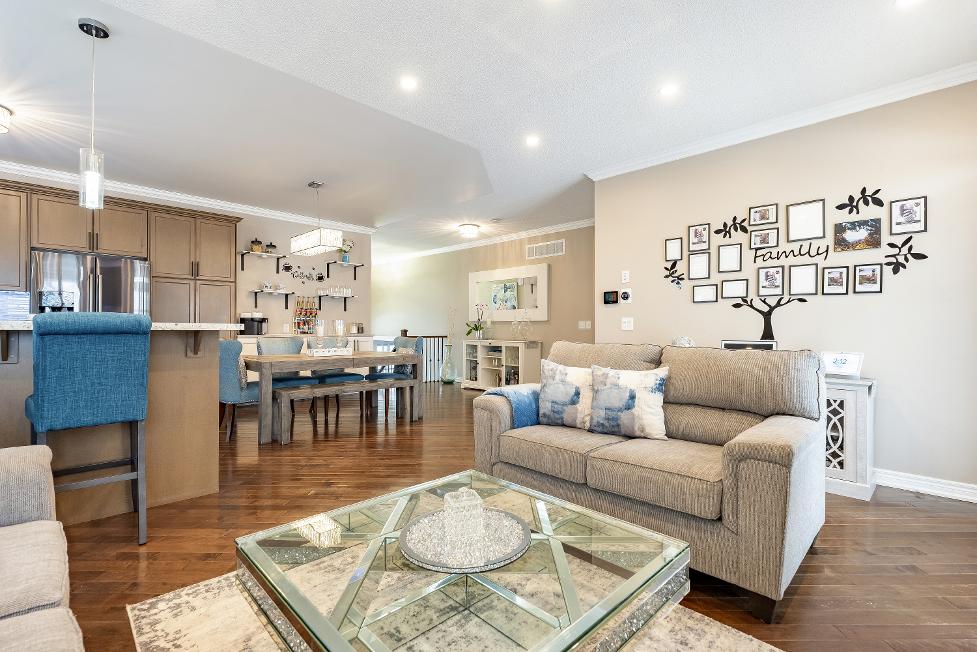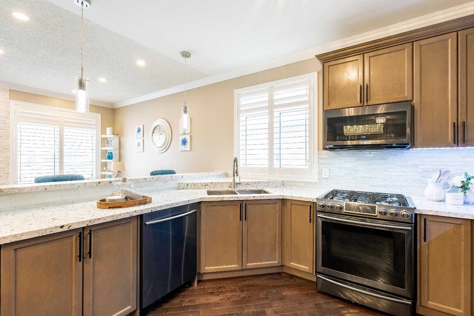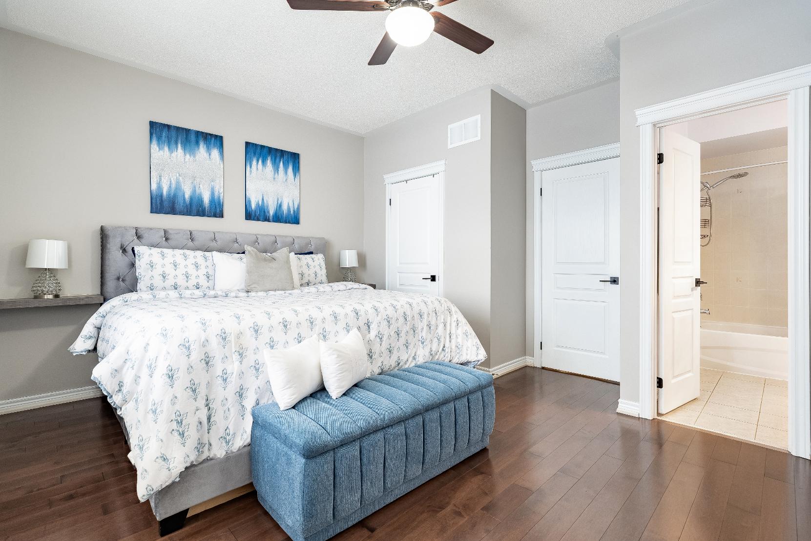 The main levelofferscomfortable sleeping accommodationshighlighted bya peacefulprimarybedroom with backyard views, generousstorage,and semi-ensuite accessto a 4-piecebathroom with quartzcountertops,whilea third bedroom provides flexibilityforchildren,guests,orevolving familyneeds