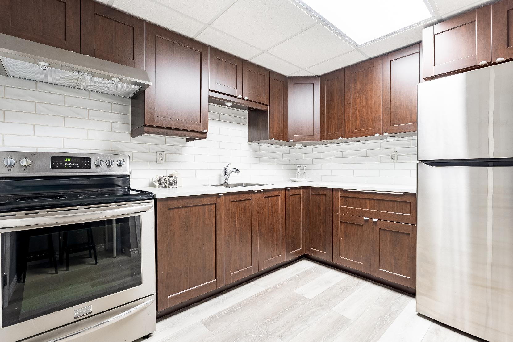 - Stainless-steelappliancesincluding a gasstove,a deep fridge,a range hood microwave,and a dishwasher