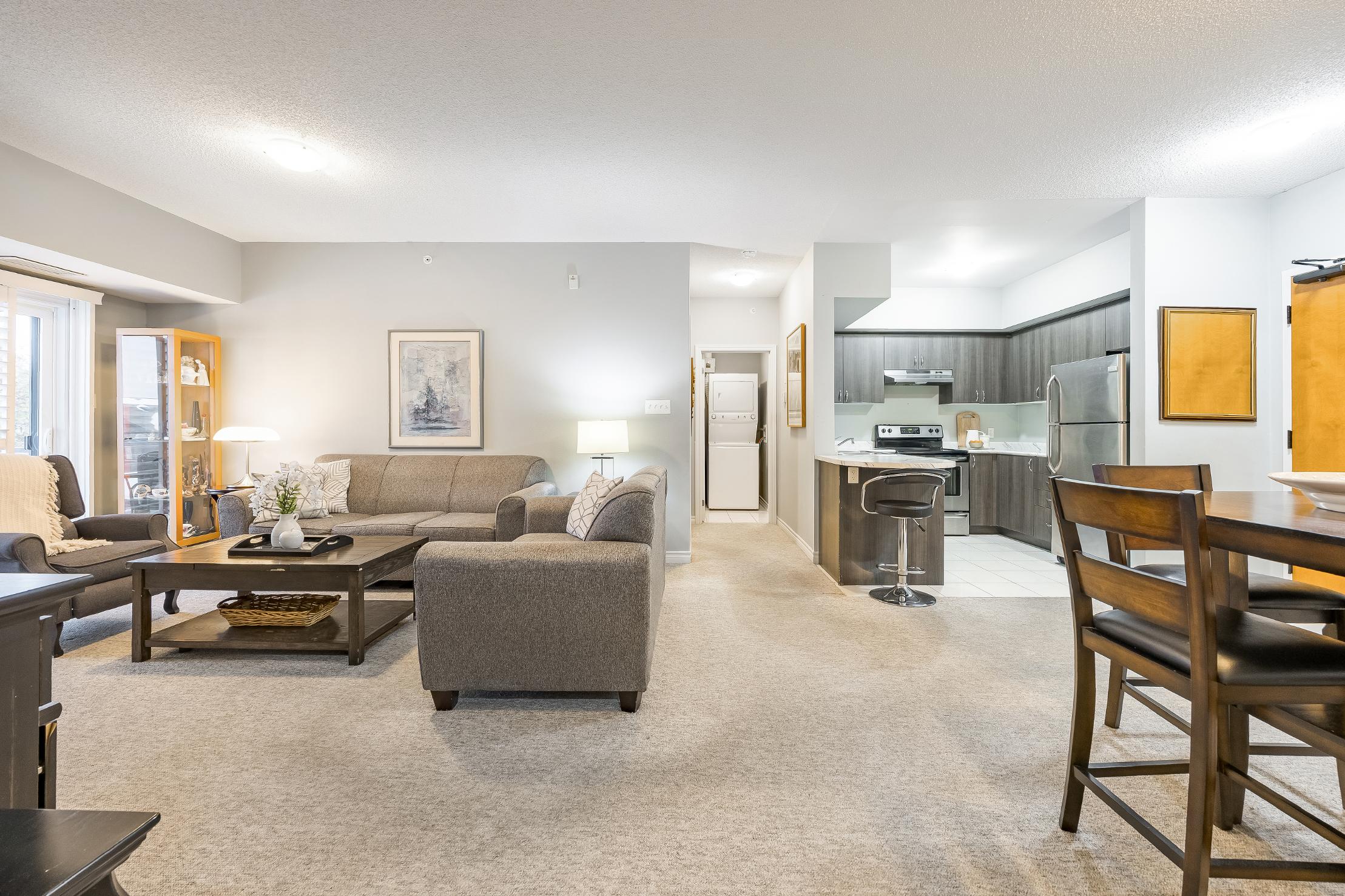 Welcometo a beautifullydesigned condo that seamlesslyfusescontemporarystylewith practical living,situated on the second level,perfect forthose looking to plant rootsin a vibrant and growing community