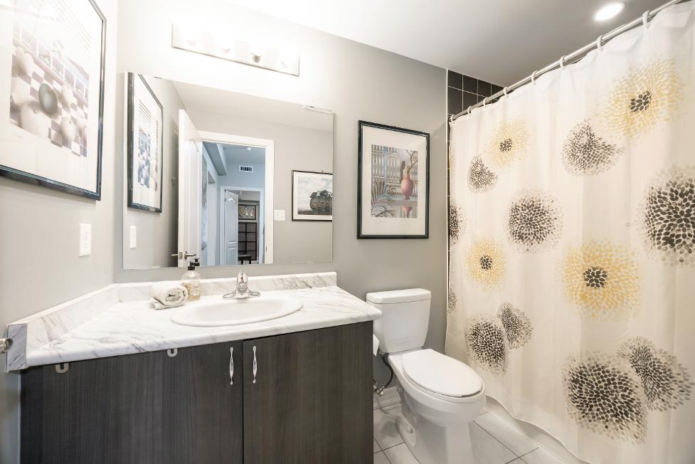 - Vanitywith under-sink cabinet space for organization