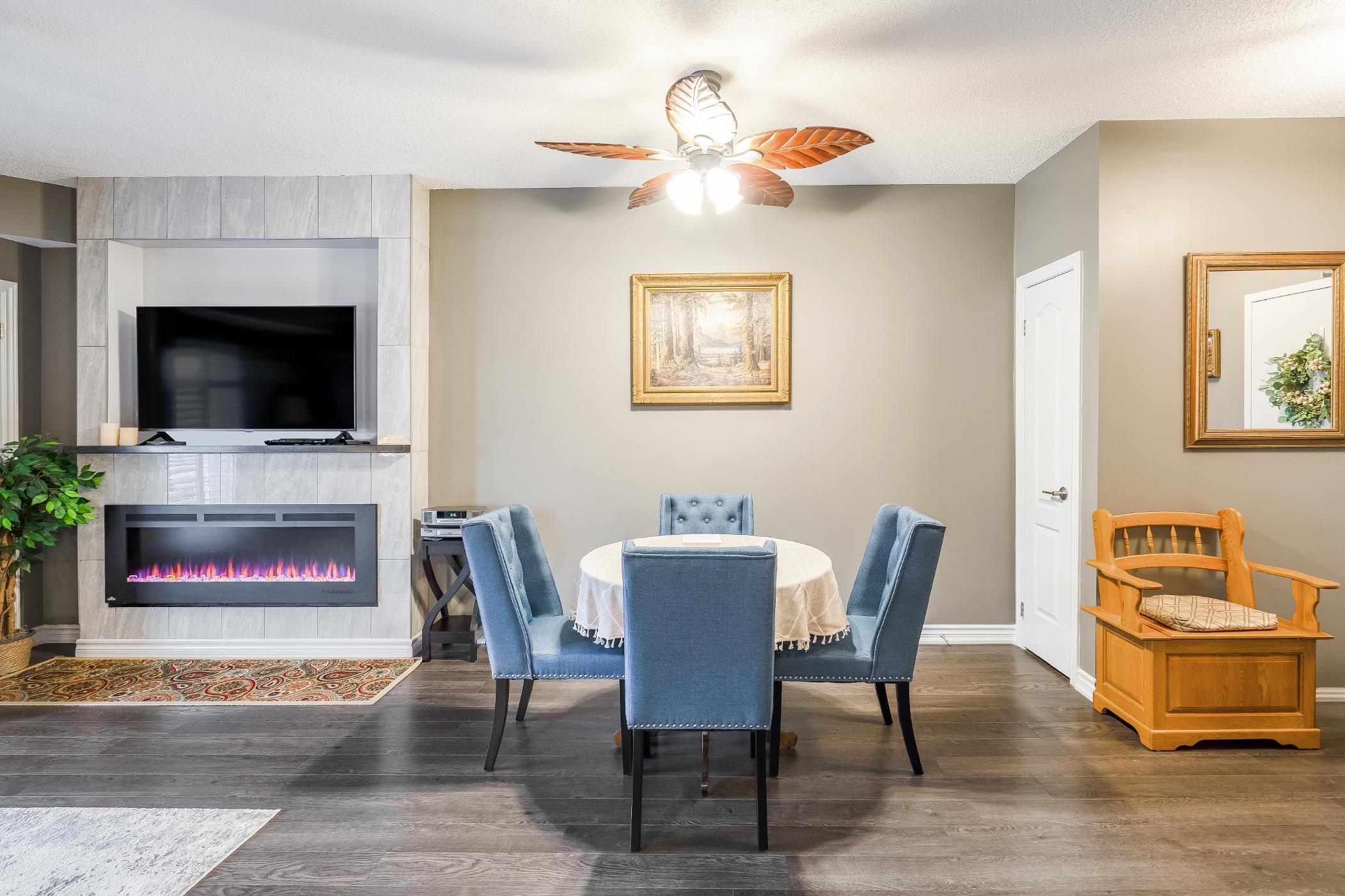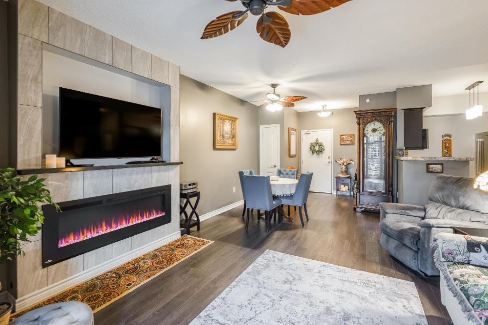 Beautifullyfinished with granite countertopsin the kitchen and bathrooms,high-end Maytag appliances,a Whirlpoolwatersoftener,an EnergyStar-certified Ecobee smart thermostat,designerpalm leaf ceiling fans, California shutters,stunning wood accent walls,a gorgeoustiled entertainment wallwith TVwallmount and a cozyNapoleon 60"electric fireplace with a remotein the living room