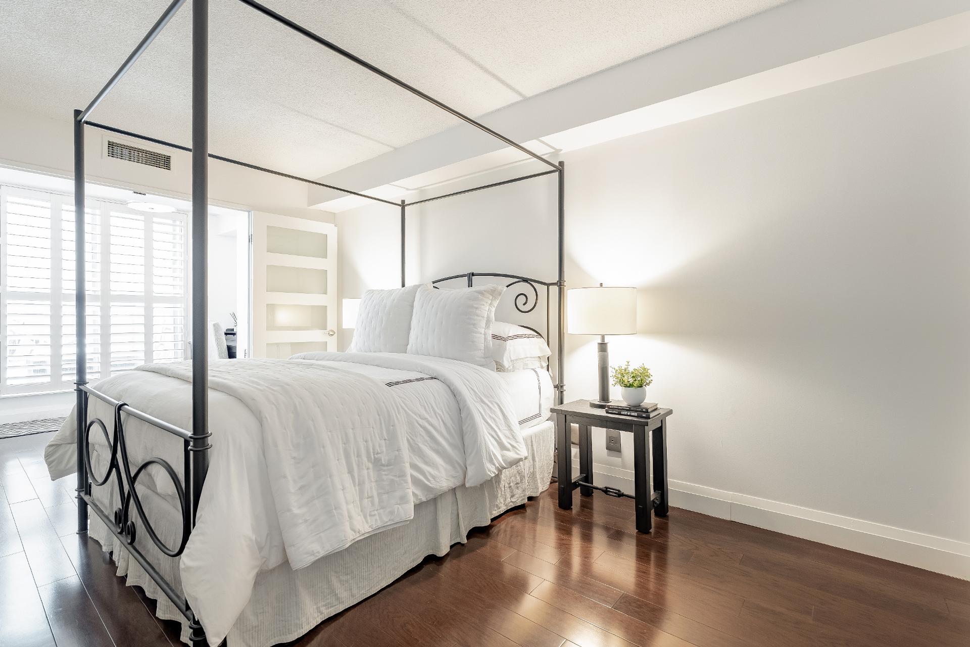 Extensivelycustomized beyond builderfinishes,thesuite showcasesengineered hardwood flooring throughout,tall baseboards,and bespokeinteriordoors,creating a polished,elevated atmosphere from the moment youstep inside