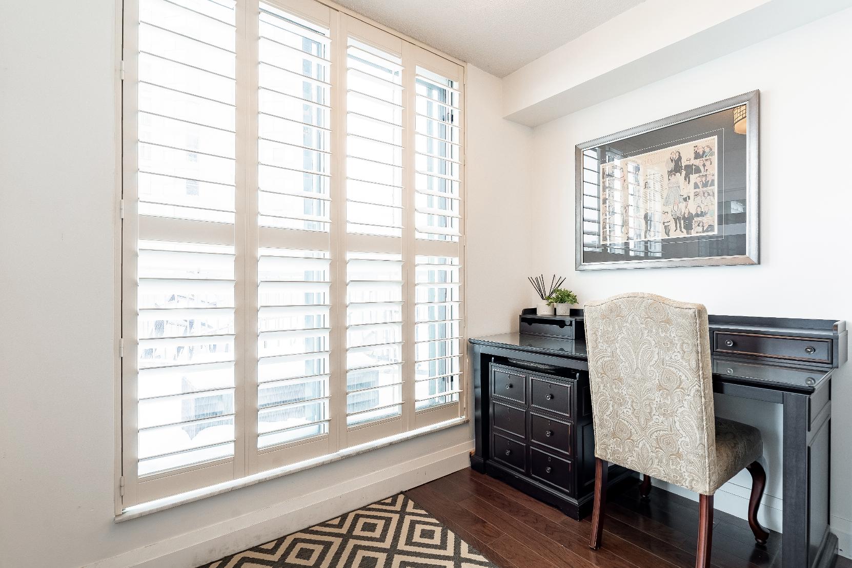Everydaycomfort iselevated with thoughtfulupgrades,including a spa-inspired bathroom with a modern TOTO toilet, California shutterson everywindow,and a built-in sound system throughout,whilethe spaciousbedroom and versatile den offerflexibilityfora home office,guest space,oradditionalliving area