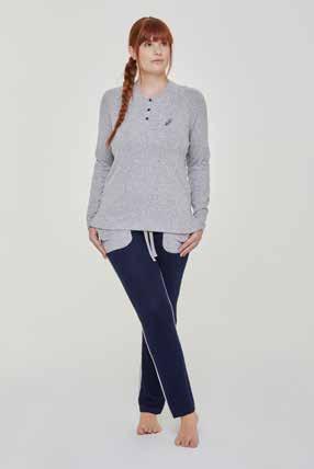 La nuova collezione offre capi in 100% cotone piacevoli da indossare: pantaloni con coulisse, stampati con fantasie easy ma al tempo stesso casual, sono abbinate a parti alte sia a scollo tondo che serafino.