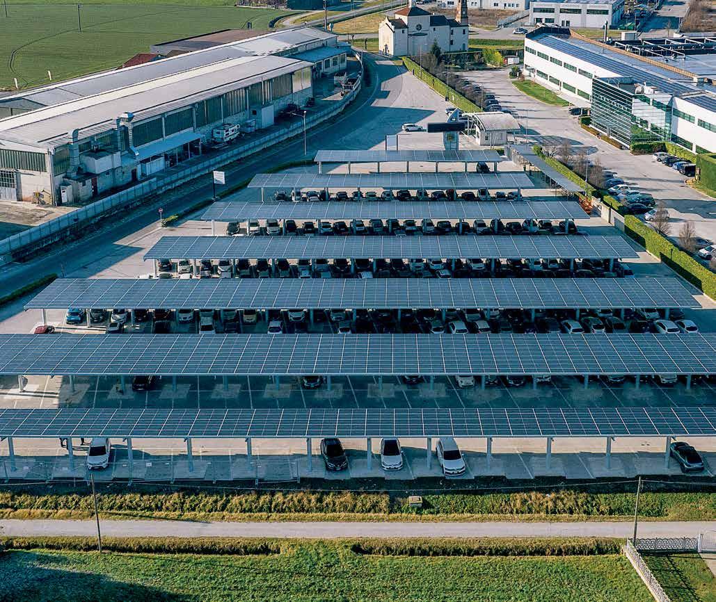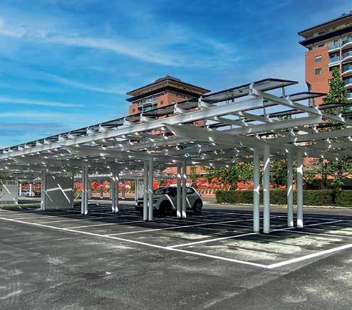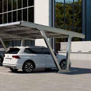 Struttura autoportante in acciaio zincato, modulare e dimensionata per carichi neve/vento. Predisposta per cablaggi e raccolta acqua.