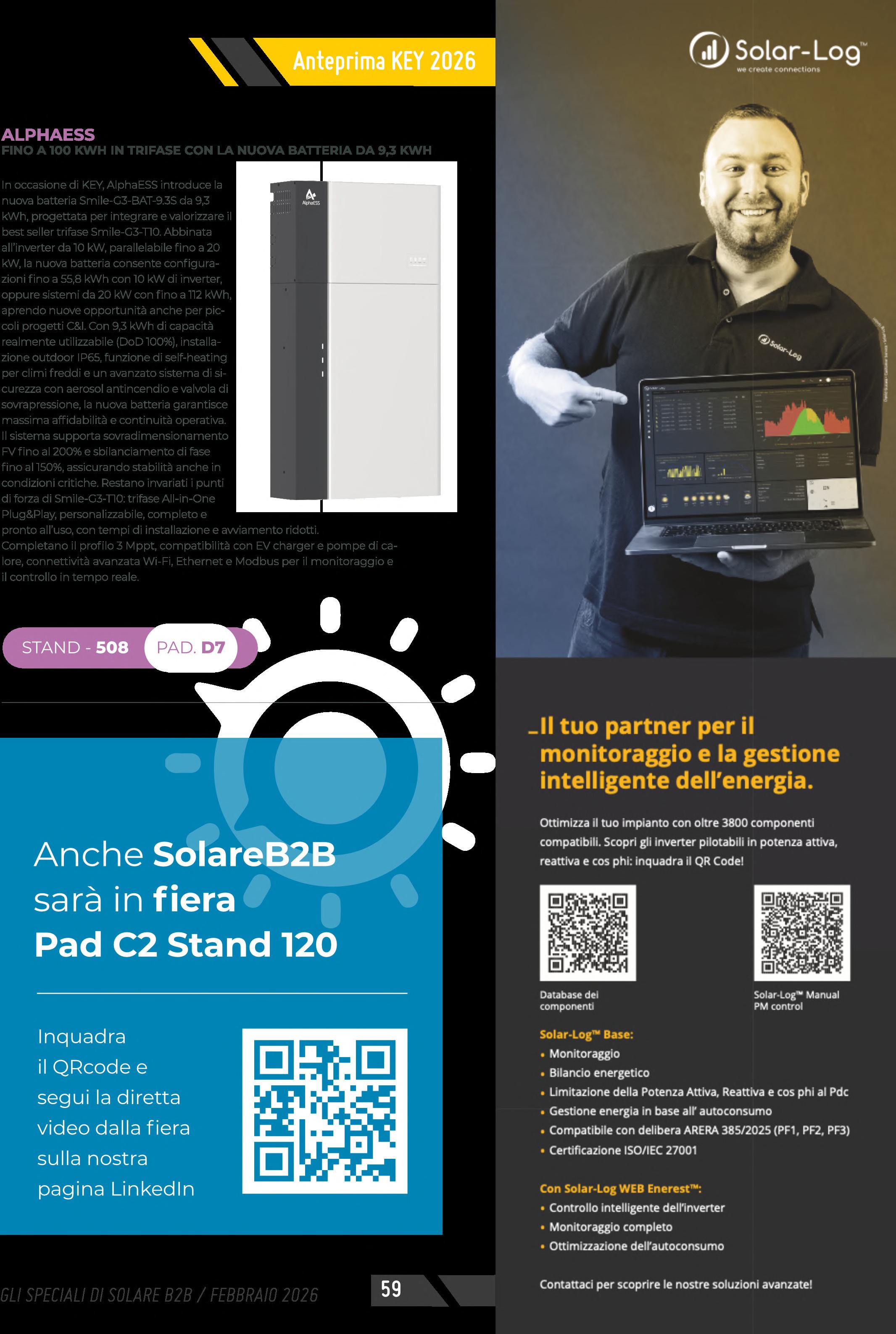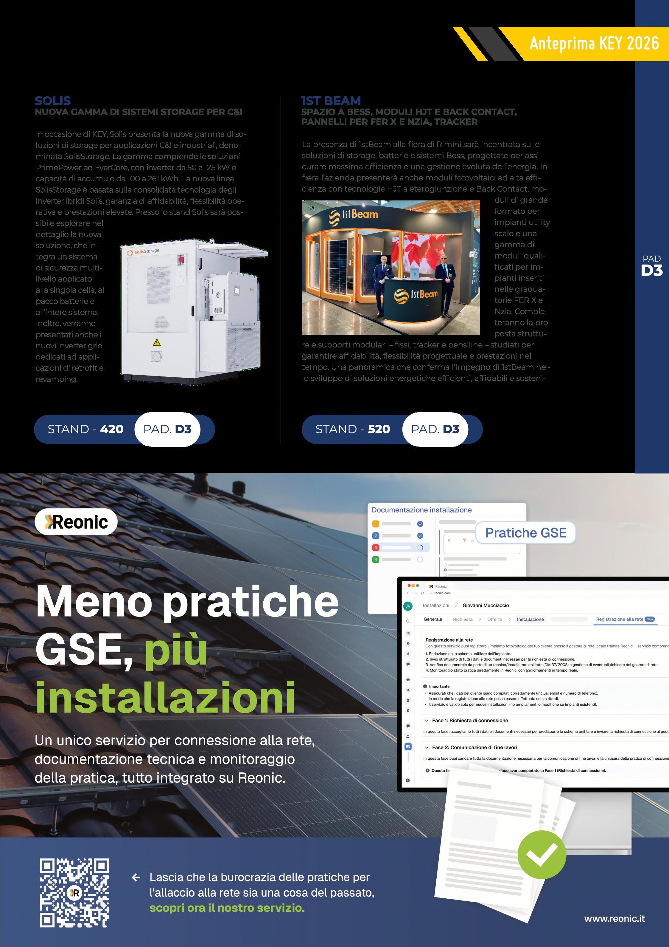 Dopo gli anni febbrili del Superbonus e dopo il calo registrato con la fine della maxi agevolazione, nel 2025 si è arrestata la caduta della taglia domestica, che si è stabilizzata con un totale connesso di 1,3 GW lo scorso anno, il 20% circa del totale allacciato. La situazione non è tanto penalizzata dai volumi quanto dai margini. Serve infatti uscire il prima possibile dalla battaglia dei prezzi: oggi in Italia ci sono operatori che si presentano con offerte a basso costo, con un impatto negativo sulla qualità dei progetti e sulle marginalità di chi da anni si concentra su questo segmento con un’offerta di valore. Servizi e approccio consulenziale sono le due chiavi per uscire dall’empasse.