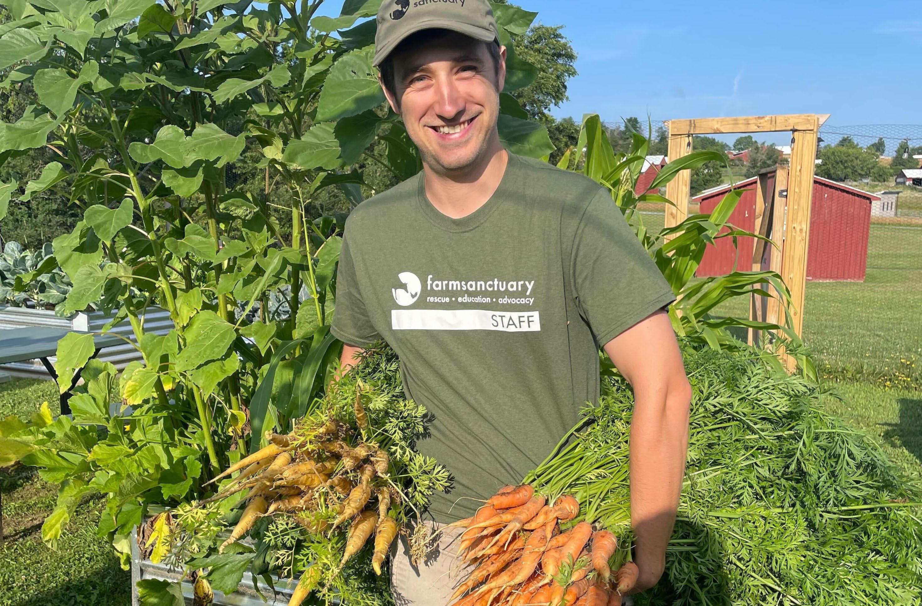 Caring for farm animals rescued from cruelty and neglect is both deeply meaningful and incredibly demanding. Our shelter staff face daily challenges— emotional strain, physical rigor, and even compassion fatigue—while nationwide shortages of veterinary and caregiving professionals make their work even harder. To honor the dedication of our caregivers and ensure the best possible lives for our animal residents, Farm Sanctuary is committed to continued investment in our Animal Care team, providing strong compensation and benefits packages including paid time for therapy services, as well as more robust training, career opportunities, and continuing education to ensure a fully staffed, skilled, and supported workforce on the ground.