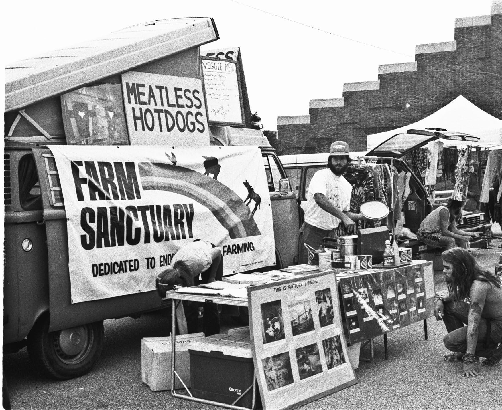 Vegetarian Van and the Grateful Dead: Stocked with meatless food, cookbooks, and advocacy literature, Farm Sanctuary’s Vegetarian Van travels to Grateful Dead concerts, building awareness around the harms of animal agriculture, and raising funds for the fledgling organization by selling veggie hot dogs.