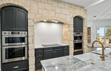 poured concrete countertops, and Viking and Sub-Zero appliances. A hidden butler’s pantry add convenience for entertaining. Two master suites are located downstairs, with two guest suites upstairs. The primary suite includes a sitting area with fireplace, spa-like bath with imported, stainless steel soaking tub, walk-in shower, and oversized closets. Upstairs, a second living room opens to a large terrace with outdoor fireplace. Outdoor features include a landscaped courtyard and porch, rock fire pit, IPE wood decks, electric sunshades, hot tub, and an open-concept pool house and a heated indoor lap pool. A 1,196±-square-foot, two-bed, two-bath modular guest home features a kitchen, living room, and new metal roof. The guest stables include a guest room, restroom, laundry, storage, and lounge. An office building with a full bath connects to a covered parking area and a climate-controlled workshop. The 11-stall horse barn features a tack room and wash rack. An equipment barn is joined by a climate-controlled bus stall and a covered port for heavy equipment. Select exterior and interior furnishings from the main house, all guest house furnishings, and some ranch equipment convey with the sale. To experience all that Chimney Hill Ranch offers, contact Howard W. Hood, Broker, 830-739-3815. Listed for $11,995,000.