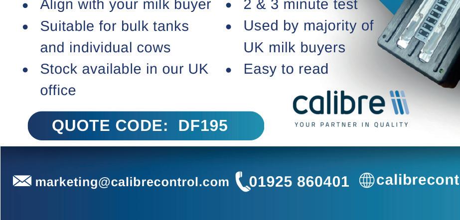 NOW AVAILABLE FOR ON FARM DEMO Call Wilson Agri on 028 7086 8430 to book your demo now! As seen on Save time & bedding - bed 250 cubicles in less than 20mins Minimal noise, pollution and running costs Low maintenance - no filters Fully hot-dip galvanised - ensures no damage to the hopper when collecting bedding Easy loading - loading is simplified to the pull of a lever Fast energy efficient charging - standard 13amp socket Petrol & diesel options also available FULLY ELECTRIC Dairy Farmer, Unit 4, Fulwood Business Park, Caxton Road, Preston, Lancashire PR2 9NZ Origination by Farmers Guardian, Unit 4, Fulwood Business Park, Caxton Road, Preston, Lancashire PR2 9NZ. Printed by Precision Colour Printing, Halesfield 1, Stirchley, Telford TF7 4QQ. No responsibility can be accepted by Dairy Farmer for the opinions expressed by contributors. Editor Katie Jones 07786 856 439 katie.jones@agriconnect.com Content Editor/Designer Mike Begley 01772 799 405 mike.begley@agriconnect.com Picture Editor Marcello Garbagnoli 01772 799 445 marcello.garbagnoli@agriconnect.com Sales Director Stephanie Ryder 07917 271 987 stephanie.ryder@agriconnect.com Account Manager Mark Jackson 01322 449 624, mark.jackson@agriconnect.com Classified Advertisements 01772 799 400 fgclassified@agriconnect.com Advertising Production Justine Sumner 01772 799 437 Fax: 01772 796 747 justine.sumner@agriconnect.com Circulation and subscriptions 0330 333 0056 help@subscribe.farmers-guardian.com Subscription rates: UK £65 a year Europe: £85 World: £95 ISSN 1475-6994 © Farmers Guardian 2024 All rights reserved. No part of this publication may be reproduced or transmitted in any form or by any means, electronic or mechanical including photocopying, recording, or any information storage or retrieval system without the express prior written consent of the publisher. The contents of Dairy Farmer are subject to reproduction in information storage and retrieval systems.