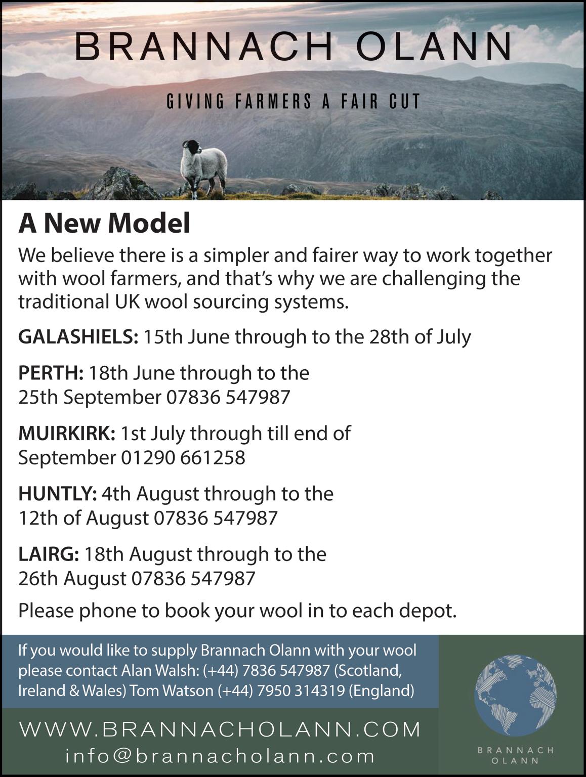 If you would like to supply Brannach Olann with your wool, please contact: Alan: 07836 547987 (Scotland) Steve: 07957 988181 (Wales) WWW.BRANNACHOLANN.COM info@brannacholann.com