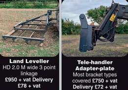 compact rops tractor, 25hp, turfs, 48” mulch deck, 5 yr warranty POA Kubota G23, 23hp, 48” cut, collection, tidy £4,950.00 Kubota G21HD, 21 hp, 48” cut, collection, tidy £3,950.00 Longdog GP Quad trailer as new £1,195.00 www.claytonfarmmachinery.ltd 01772 783664 SALES, SERVICE, SPARES & HIRE SALES, SERVICE, SPARES & HIRE SMYTH FC18 20T SILAGE TRAILERS MAJOR LGP 2670 ALPINE VAC TANKER MAJOR LGP 2300 ALPINE VAC TANKER SULKY 3 BAY TWIN DISC FERT SOWER ALBUTT HARDOX TINE SHEAR GRABS STORTH 20T SLURRY STIRRERS STORTH RECEPTION PIT PUMPS STORTH BOX YARD SCRAPER FLEMING ALL RUBBER YARD SCRAPERS LLWC 7.6FT BUCKETS MASCHIO 280 FLAIL TOPPERS MASCHIO 3M POWER HARROW ALBUTT 2200 HARDOX SHEAR GRAB............. £1,850 WYLIE 1900 SHEAR GRAB C/W MANITOU BRACKET ....................................................................... £1,500 ALO 2000 SHEAR GRAB C/W MANITOU BRACKET ....................................................................... £1,500 STORTH 2013 5” SUPER JET 3 POINT LINK PUMP ....................................................................... £3,500 SULKY 2018 DX 20 TWIN DISC SOWER £3,500 KRM EX TREND TWIN DISC SOWER ................ £1,250 MAJOR LGP 2400 VAC TANKER £7,950 MAJOR LGP 2050 VAC TANKER CHOICE £5,250 NC 14 TON DUMP TRAILER £5,950 NEW MACHINERY IN STOCK NEW MACHINERY IN STOCK GENERATORS PTO & DIESEL SALE’S, HIRE & REPAIRS. LARGE STOCK P COWELL & SONS 01772 653569 Call 01772 799500 and place your advert today Published May 10, 2024 Advertising opportunities now available in our MACHINERY AND TRACTOR SUPPLEMENT Get your brand seen by decision makers, in uencers, farm owners and managers! Speak to Eva Bailey today 01772 799 500 fgclassi ed@farmersguardian.com Available toHire and Buy Hot and Cold P.T.O. Pressure 3000 p.s.i.16-30L/min 2ndLance Available Fully TractorPowered Hot&Cold Water Pressure Washers www.LandyPressureWashers.com Tel: 01756 794291 Skipton. N.Yorkshire Find us landywashers