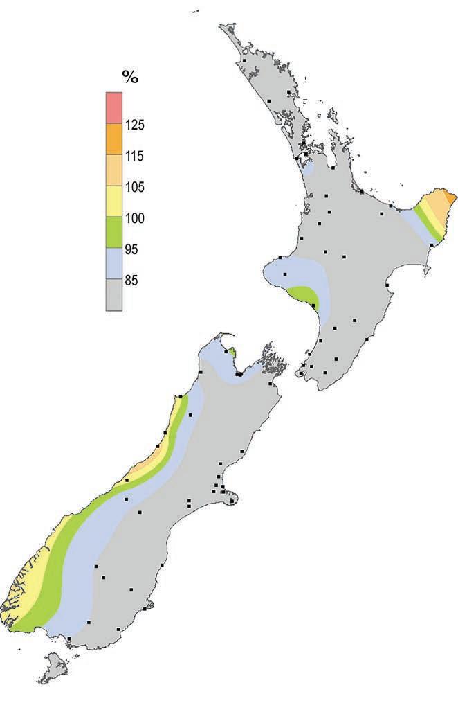 This type of set-up can even produce small pockets of low pressure inland –further increasing showers or patchy rain inland in places usually much drier, like Otago and Canterbury. If we had a stronger La Niña, that would push more easterlies over NZ –