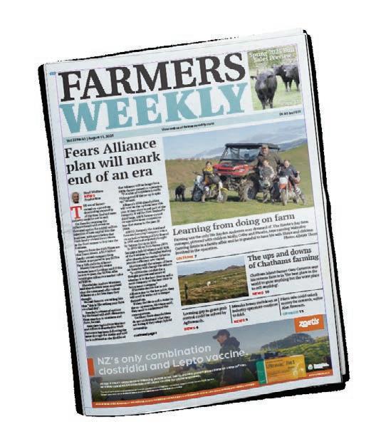 Farmers Weekly is Published by AgriHQ PO Box 529, Feilding 4740, New Zealand Phone: 0800 85 25 80 Website: www.farmersweekly.co.nz