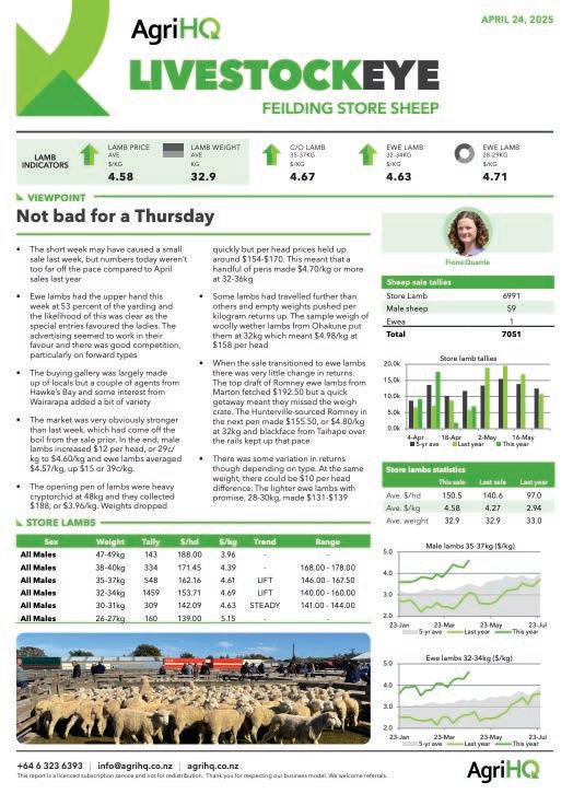 These weekly saleyard results are collated by the AgriHQ LivestockEye team. Cattle weights and prices are averages and sheep prices are ranges. For more detailed results and analysis subscribe to your selection of LivestockEye reports. Scan the QR code or visit www.agrihq.co.nz/livestock-reports
