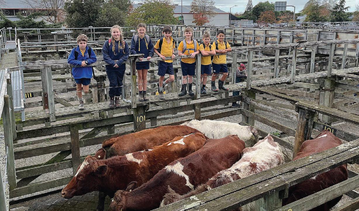 Argyll East School Farm Club students, from left, Charlie Kent, Lottie Smith, Maddie Butler, Lachlan Foley, Remy Davidson, Austin Buckeridge and Tei Pirie give their cattle a final once-over ahead of last Wednesday’s sale at Stortford Lodge in Hastings. The Farm Club sold six R3 steers and one R2 heifer at the sale.