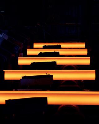 | Red hot billet on the production line.