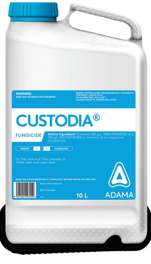 ADAMA's new foliar fungicide provides effective control of key diseases Cercospora, powdery mildew and rust. The result is improved leaf retention and palatability, more green leaf area, and better DM yields. And thanks to CUSTODIA's 28 day withholding period, you'll have greater grazing flexibility, essential when feed is tight.