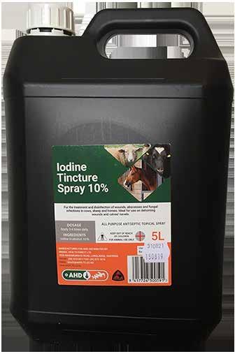 • Aids in the prevention and treatment of milk fever (hypocalcaemia) in cattle while delivery an energy supply. 1032282 AHD Iodine Tincture 10% 5L $ 208 .00