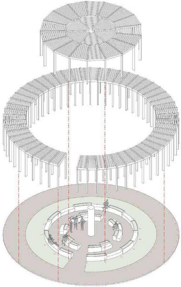 It adds lacking natural elements to space. It works as a shading area to cover the open spaces, covering sunny and hot days and cold seasons and also its revised design of the umbrella will capture rainwater on rainy days with perceptions and creates a multifunctional gathering space.